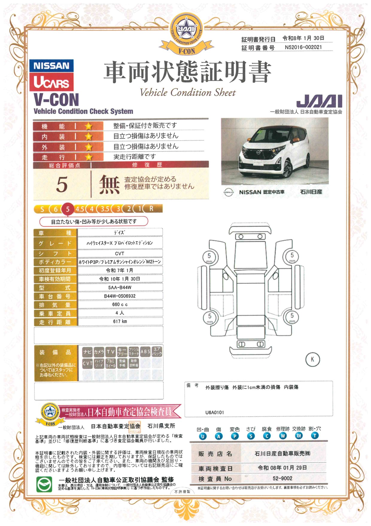 この度は石川日産UCARS小松の在庫を検索して頂き誠に有難う御座います。急速充電を備えておりますので電気自動車をご検討のお客様は一度、ご来店頂ければ充電方法を体験出来ます。当店では全国各地に販売実績がございますので、県内・県外問わず気になるお車があればお気軽にお問い合わせください。 ディーラーリースを始めました!個人様、法人様どなたでも大歓迎です。ぜひお気軽にお声掛けください! https://u-sub.nissan.co.jp/ ← こちらはリース車両専用サイトです♪