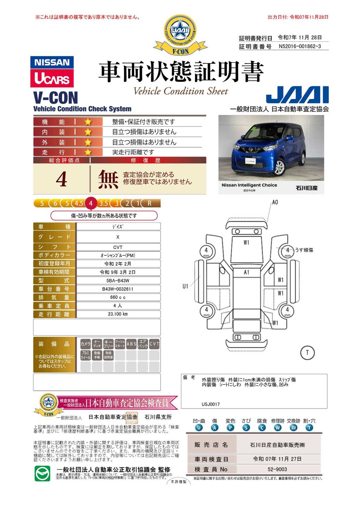デイズ 660cc 660 ハイウェイスターX リース専用車 アラウンドビューモニター
