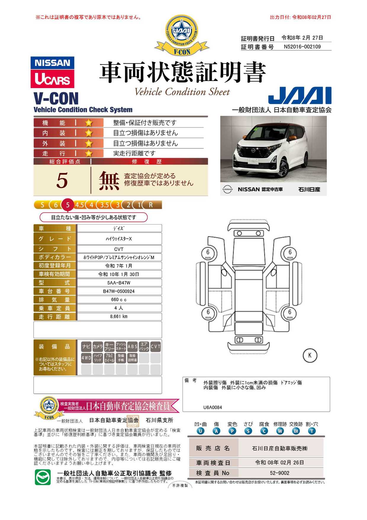 「車両状態証明書」は、査定協会監修のプロの検査員が公正かつ確かな基準で検査した”安心の証”です。