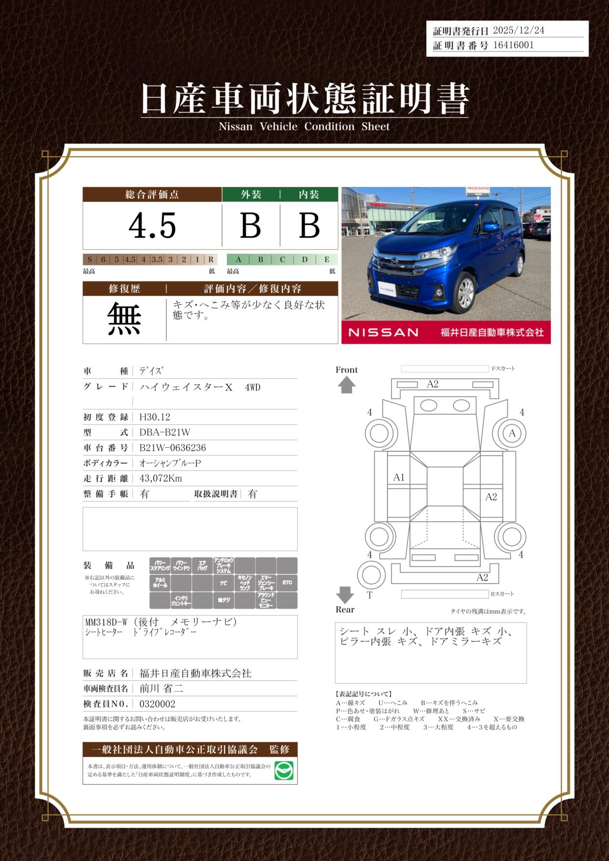 日産自動車認定の中古車販売店です。