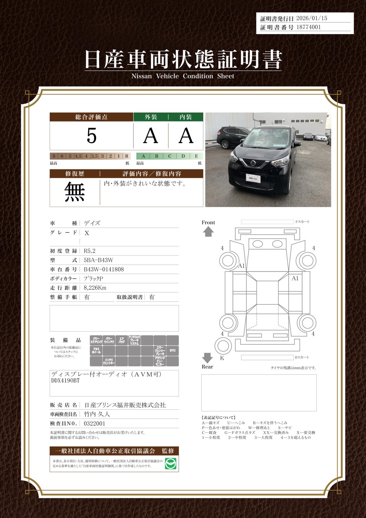 現状括弧書き内の年月まで車検有効期限が残っていますが、ご成約時に新しく車検を取り直します。なお取り直しの費用は車両価格に含まれています。
