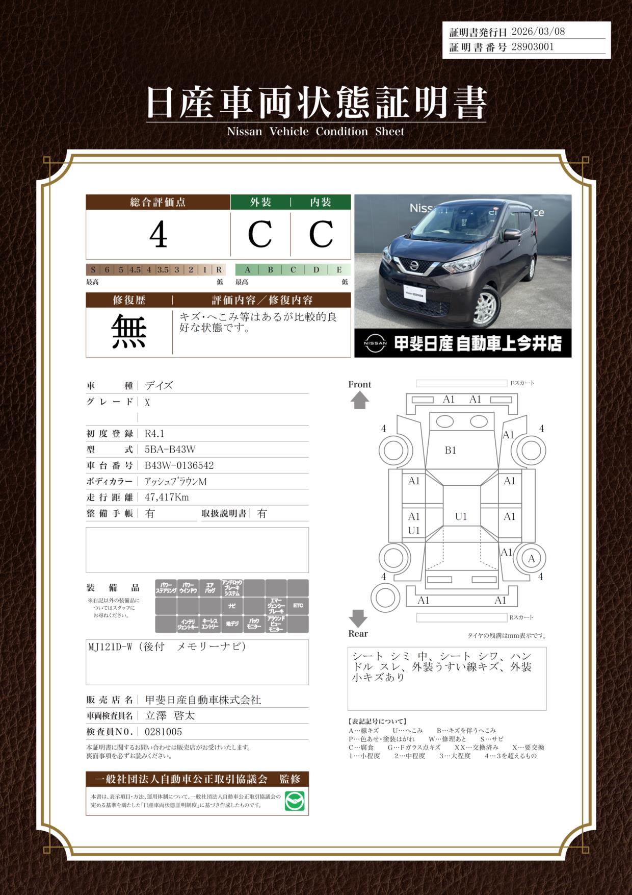 日産車両状態証明