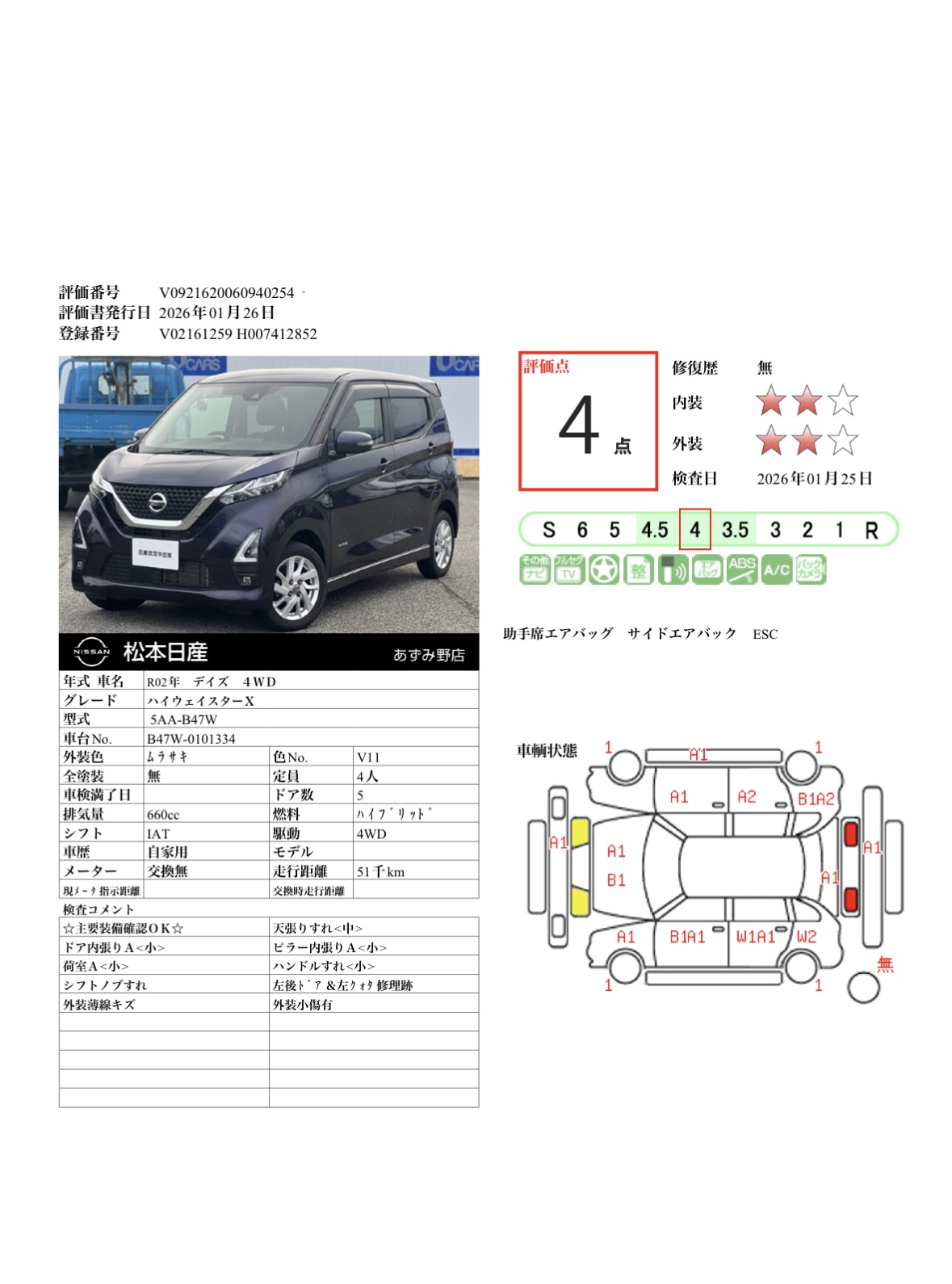 現状括弧書き内の年月まで車検有効期限が残っていますが、ご成約時に新しく車検を取り直します。なお取り直しの費用は車両価格に含まれています。