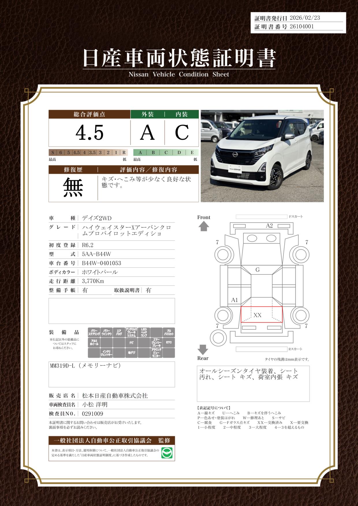 現状括弧書き内の年月まで車検有効期限が残っていますが、ご成約時に新しく車検を取り直します。なお取り直しの費用は車両価格に含まれています。