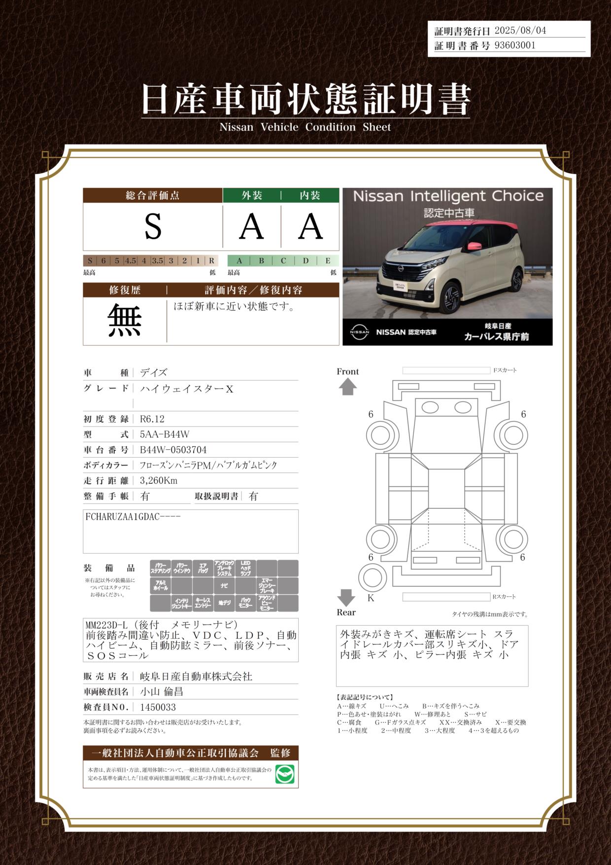 デイズ 660cc 660 ハイウェイスターX 被害軽減ブレーキ 全周囲カメラ MM223D-L