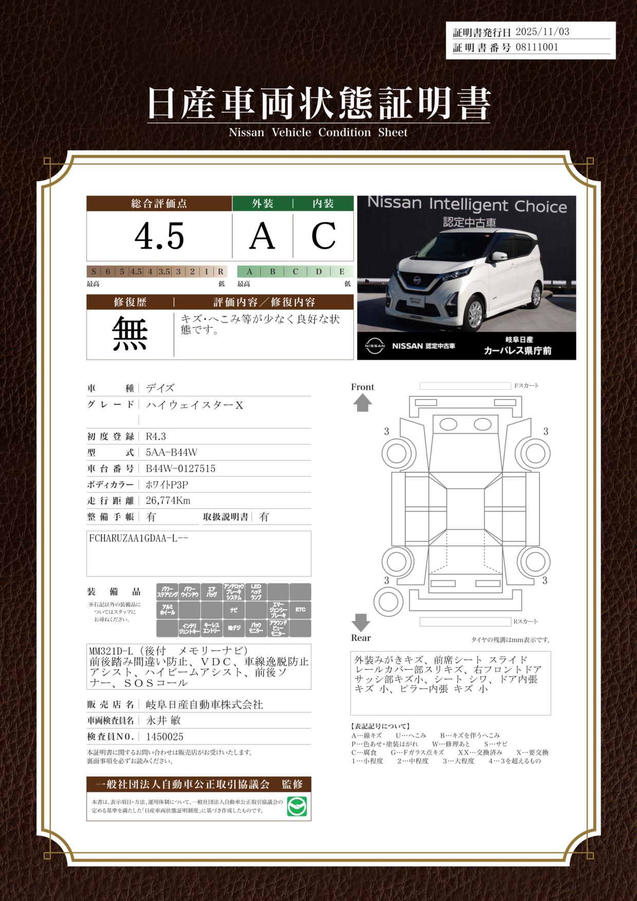 デイズ 660cc 660 ハイウェイスターX 被害軽減ブレーキ 全周囲カメラ MM223D-L