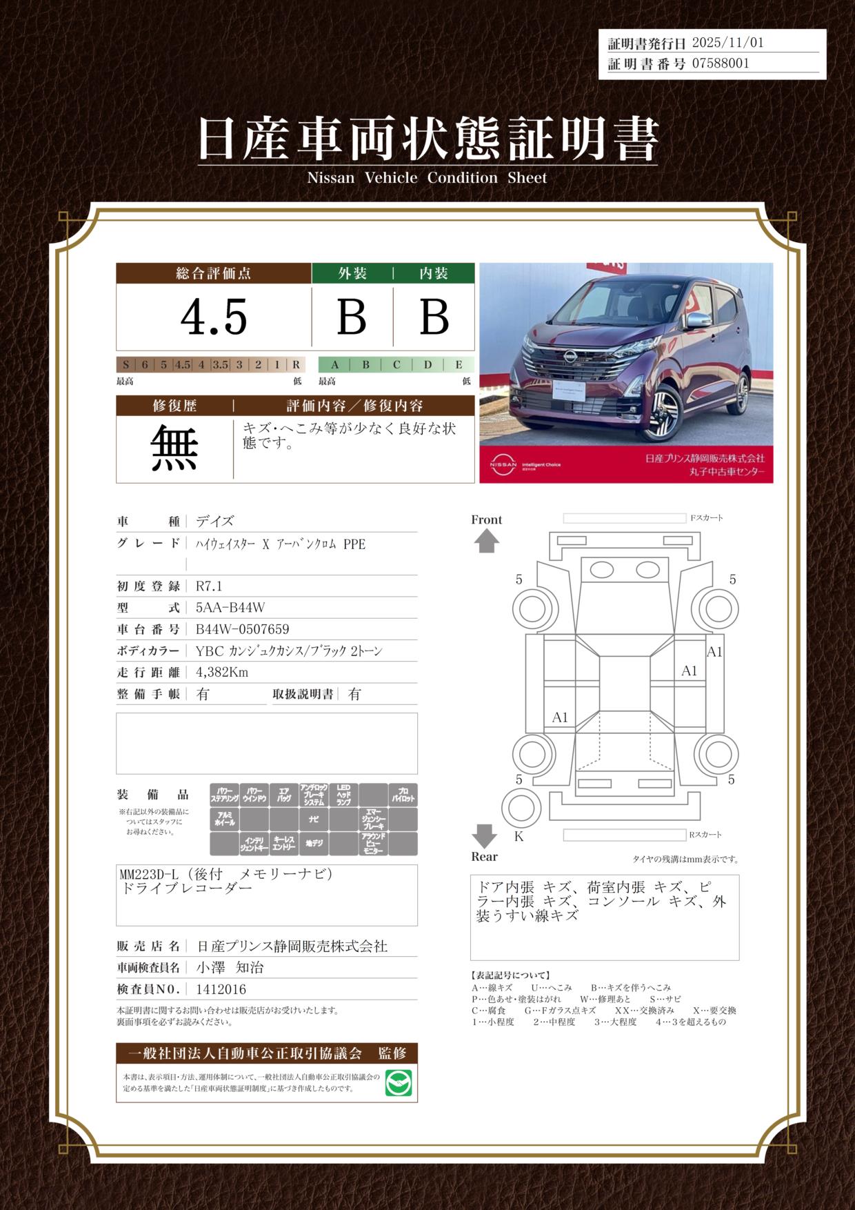 デイズ 660cc 660 X LEDヘッドランプ・前後ドライブレコーダー