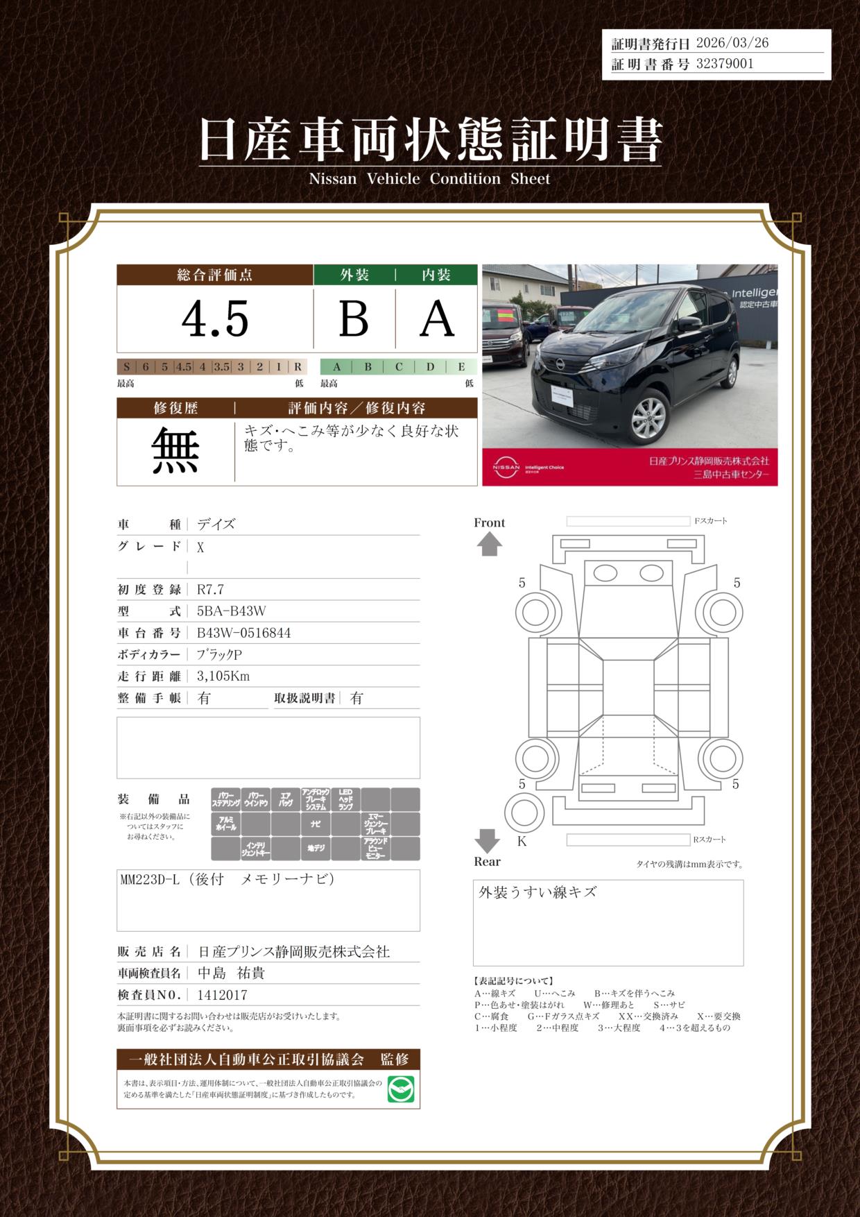 日産デイズ入荷しました★アラウンドビューモニター★メモリーナビ★前後ドライブレコーダー★インテリキー★
