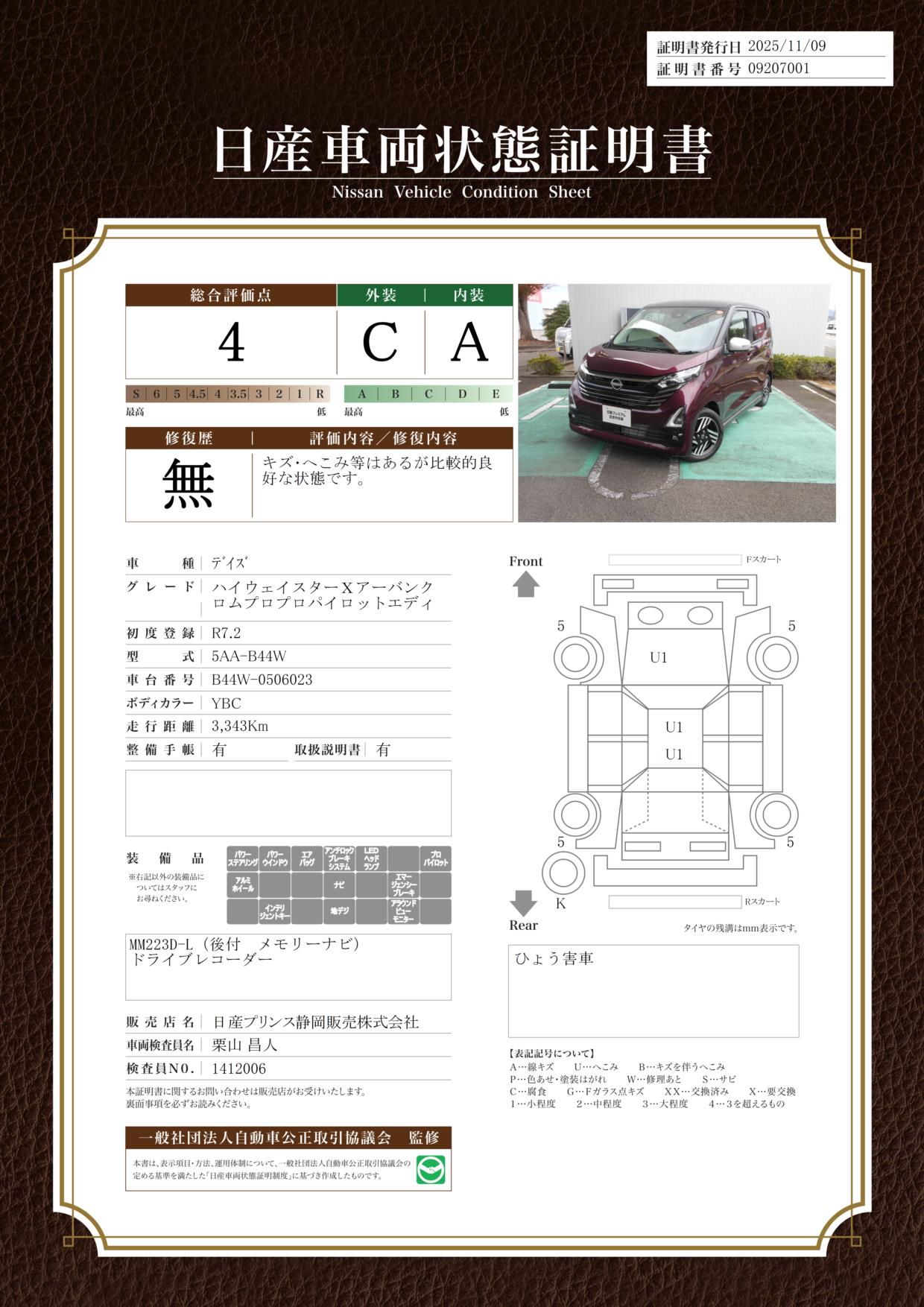 デイズ 660cc 660 ハイウェイスターX プロパイロット エディション プロパイロット・ドライブレコーダー・メモ