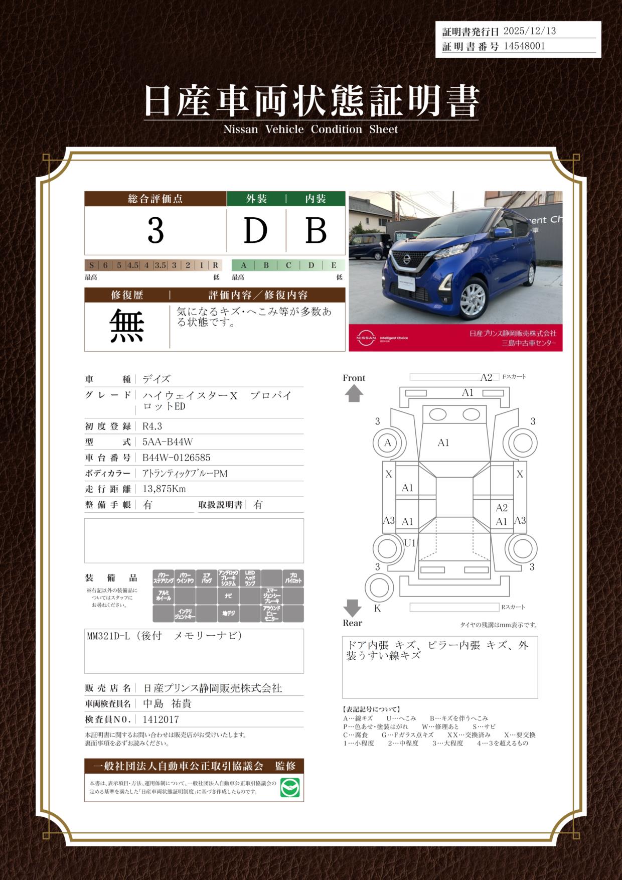 日産デイズ入荷しました★メモリーナビ★アラウンドビューモニター★プロパイロット★江マージェンシブレーキ★