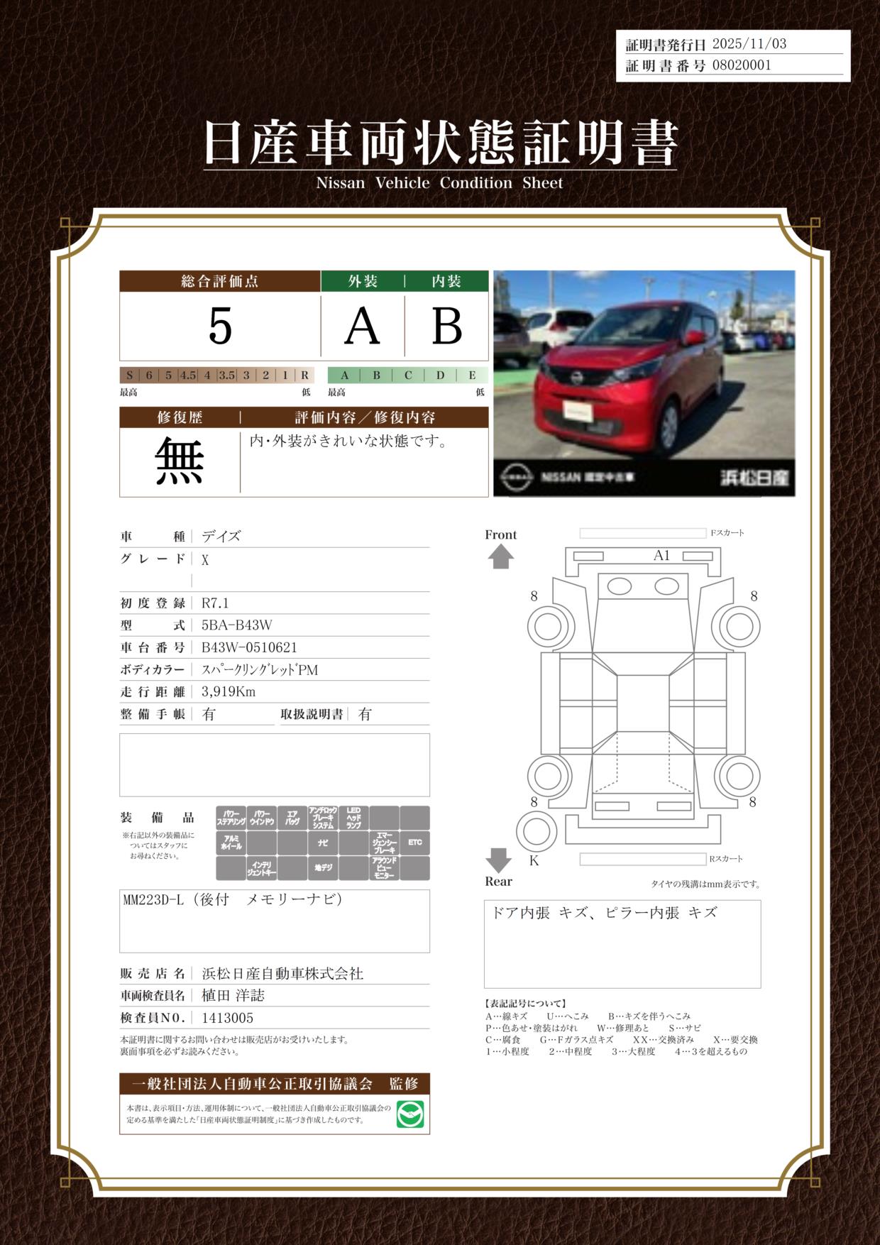 浜松日産自動車株式会社の同じ中古車在庫一覧