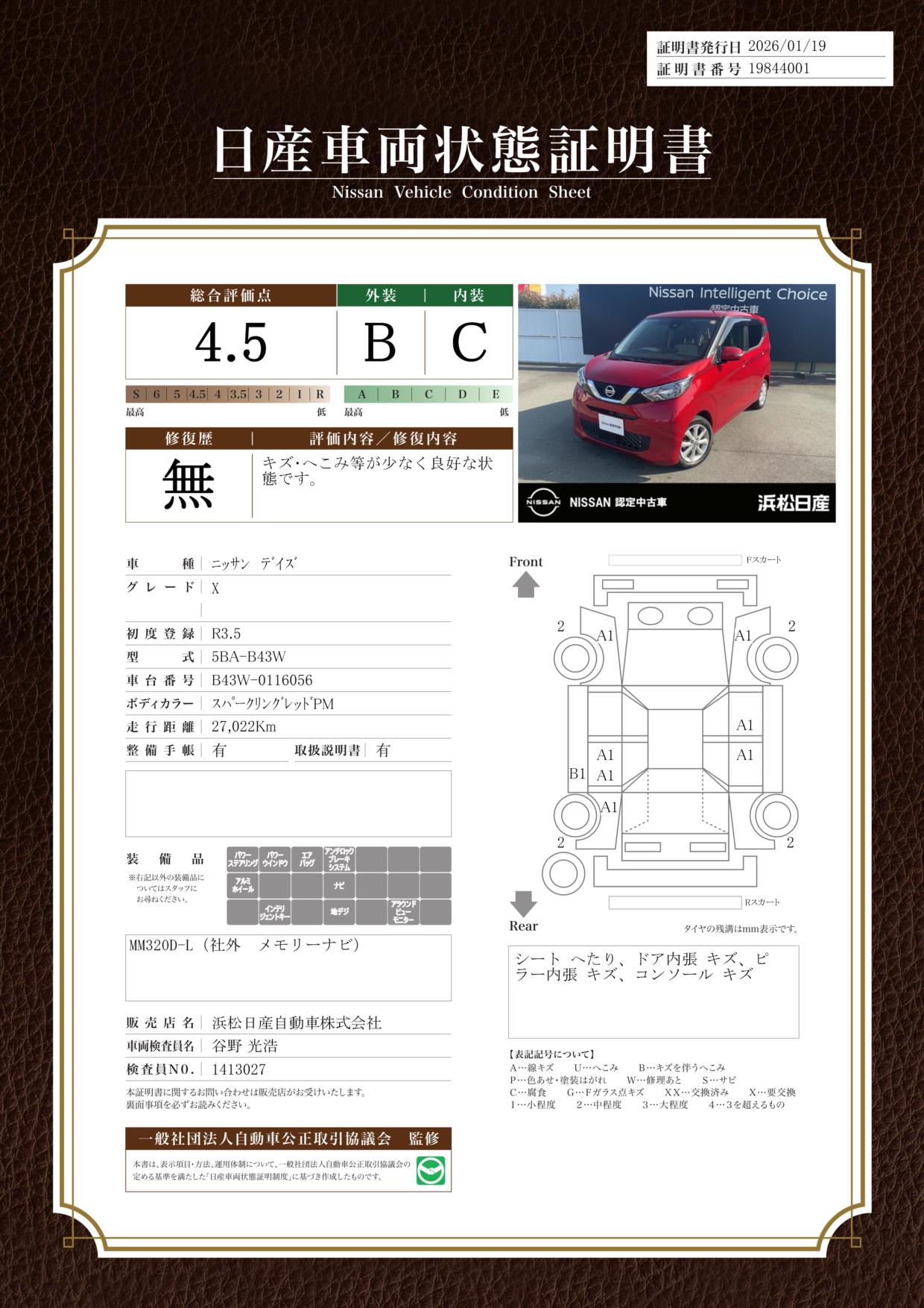 現状括弧書き内の年月まで車検有効期限が残っていますが、ご成約時に新しく車検を取り直します。なお取り直しの費用は車両価格に含まれています。