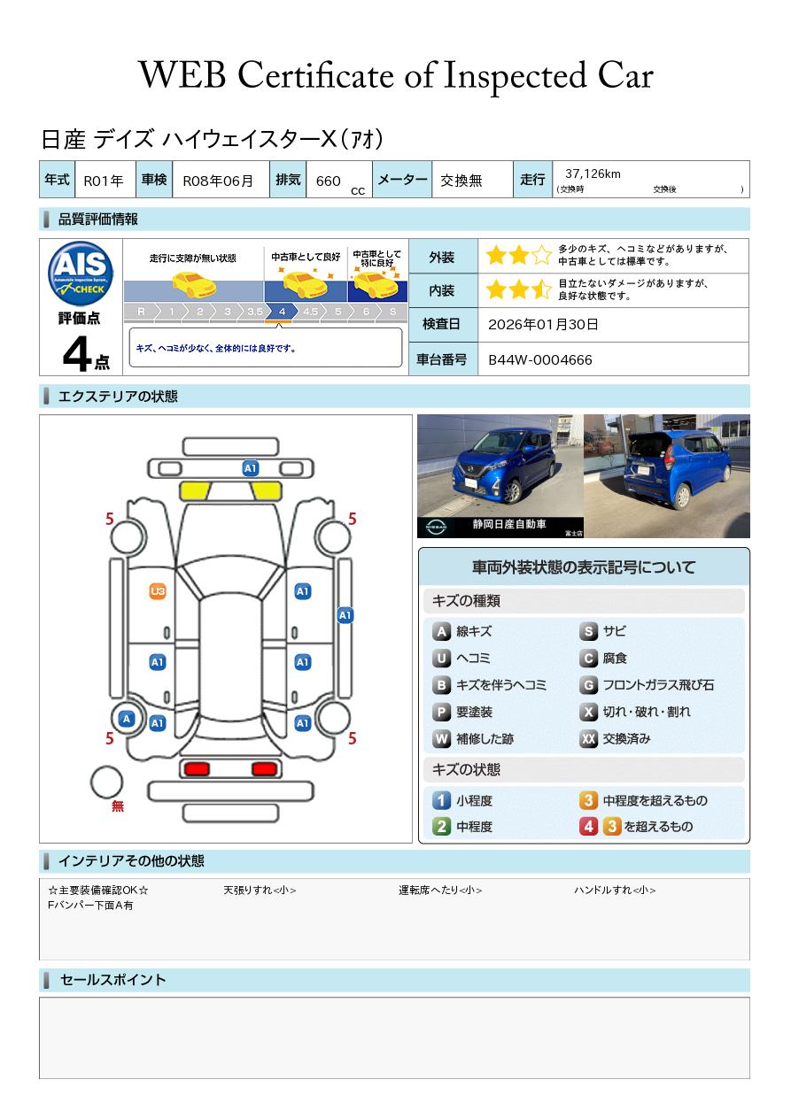 現状括弧書き内の年月まで車検有効期限が残っていますが、ご成約時に新しく車検を取り直します。なお取り直しの費用は車両価格に含まれています。