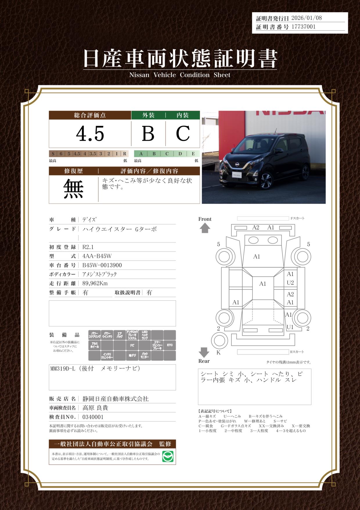 デイズ 660cc 660 ハイウェイスターGターボ 純正メモリーナビ エマージェンシーブレー