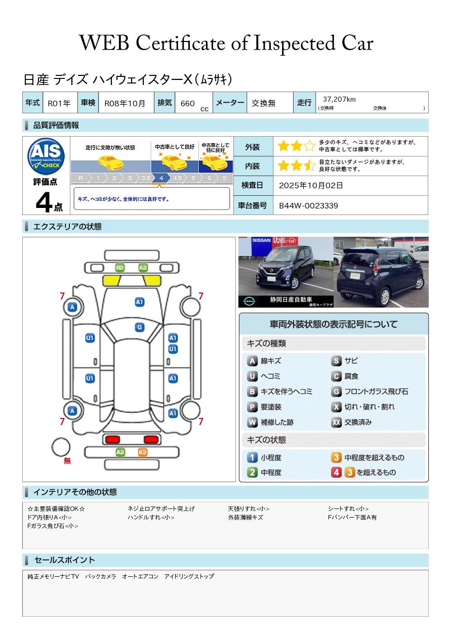 現状括弧書き内の年月まで車検有効期限が残っていますが、ご成約時に新しく車検を取り直します。なお取り直しの費用は車両価格に含まれています。