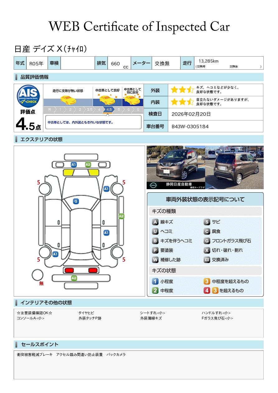 現状括弧書き内の年月まで車検有効期限が残っていますが、ご成約時に新しく車検を取り直します。なお取り直しの費用は車両価格に含まれています。