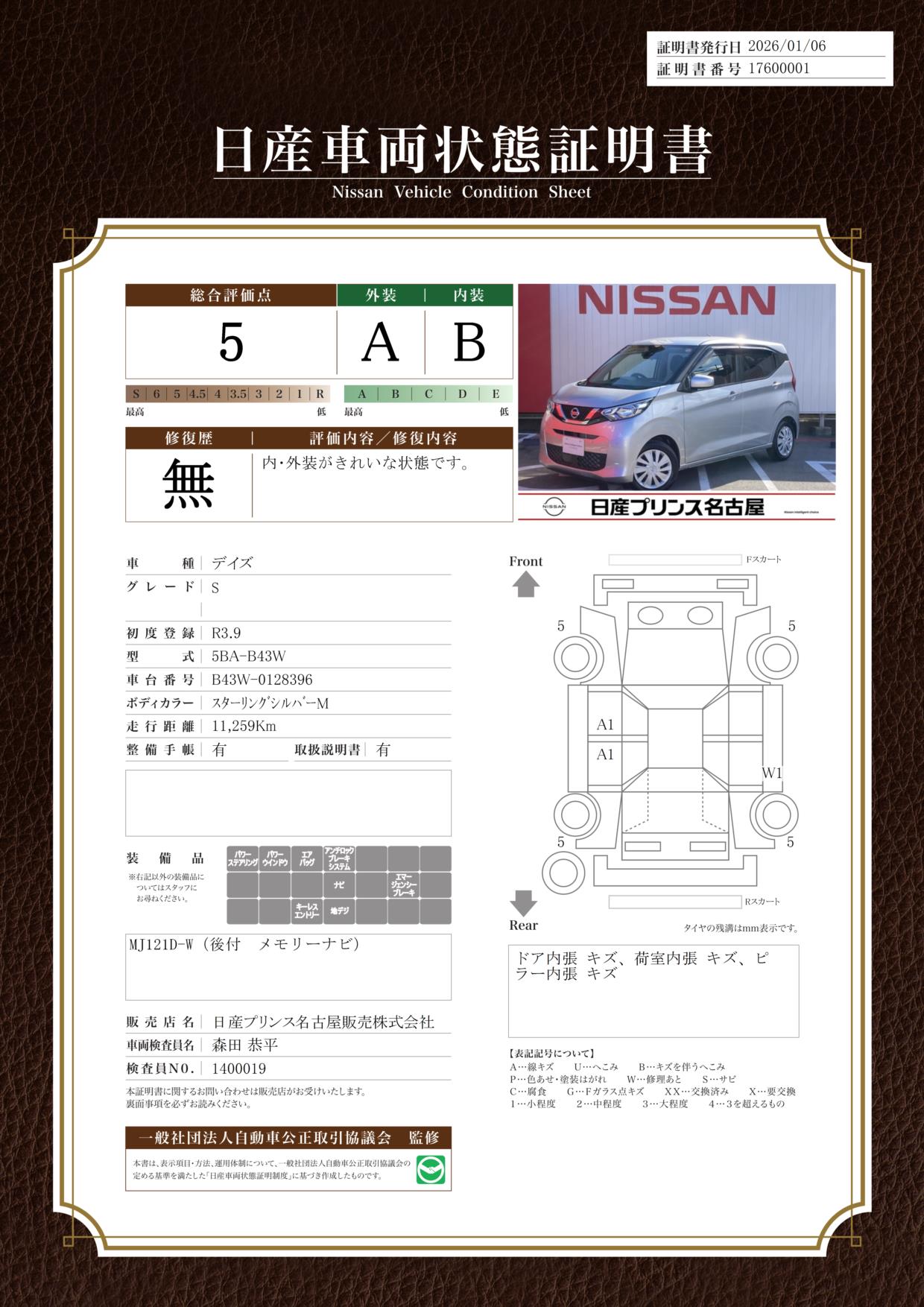 現状括弧書き内の年月まで車検有効期限が残っていますが、ご成約時に新しく車検を取り直します。なお取り直しの費用は車両価格に含まれています。
