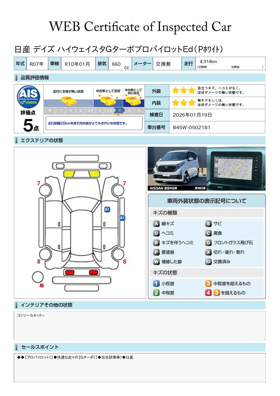 デイズ 660cc 660 ハイウェイスターGターボ 当社社用車/純正ナビ/アラウンドビューモニ
