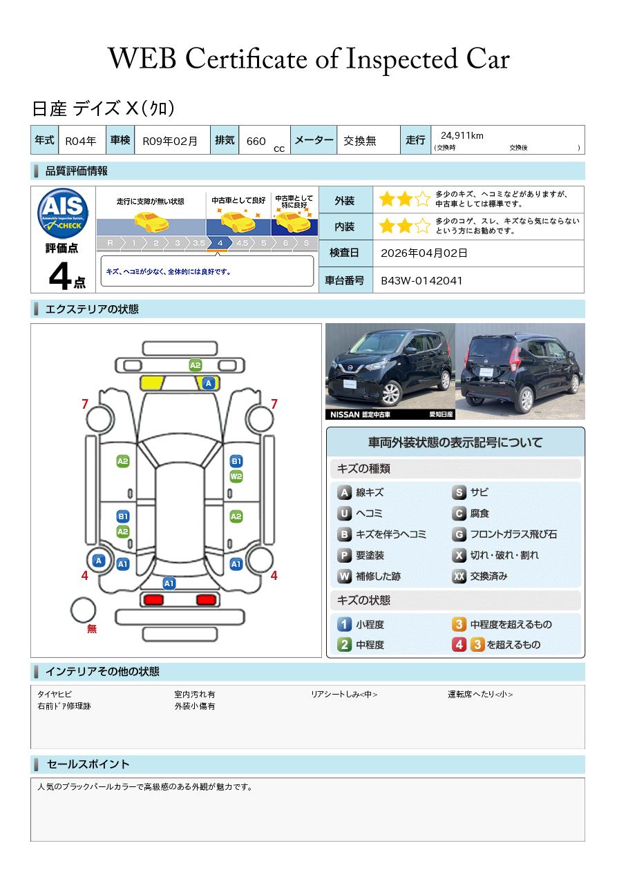 現状括弧書き内の年月まで車検有効期限が残っていますが、ご成約時に新しく車検を取り直します。なお取り直しの費用は車両価格に含まれています。