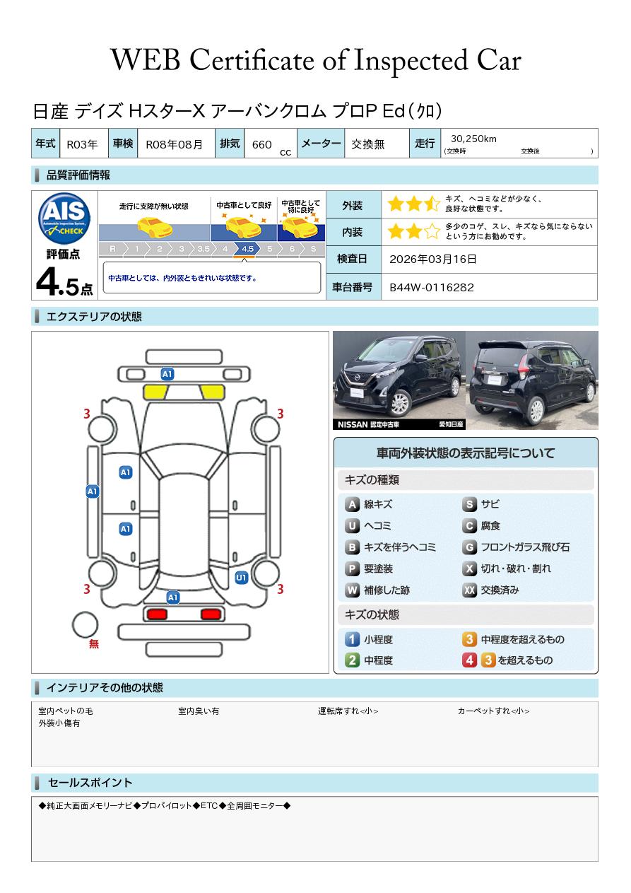 「車両状態証明書」は、査定協会監修のプロの検査員が公正かつ確かな基準で検査した”安心の証”です。