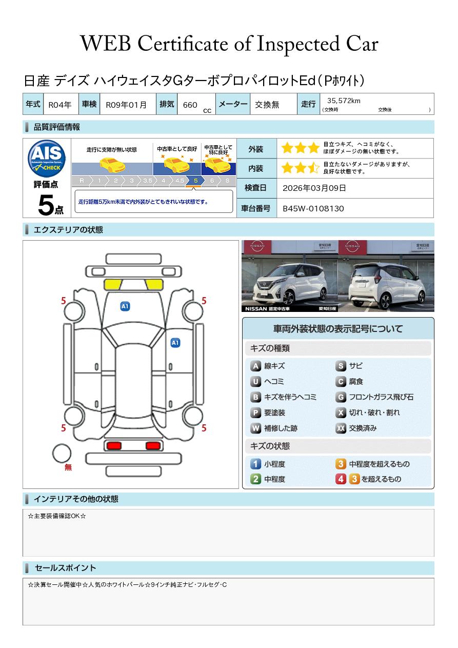 「車両状態証明書」は、査定協会監修のプロの検査員が公正かつ確かな基準で検査した”安心の証”です。