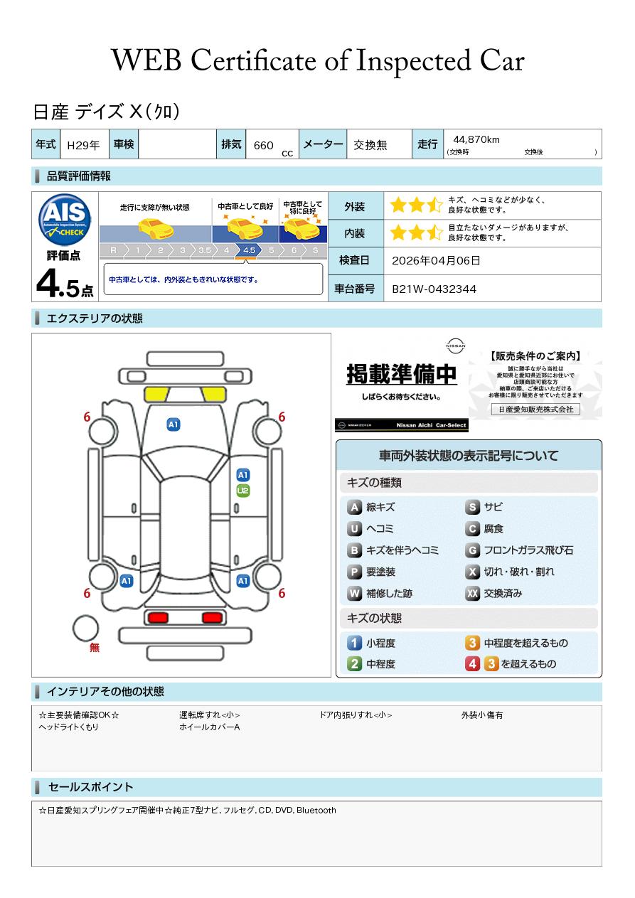現状括弧書き内の年月まで車検有効期限が残っていますが、ご成約時に新しく車検を取り直します。なお取り直しの費用は車両価格に含まれています。
