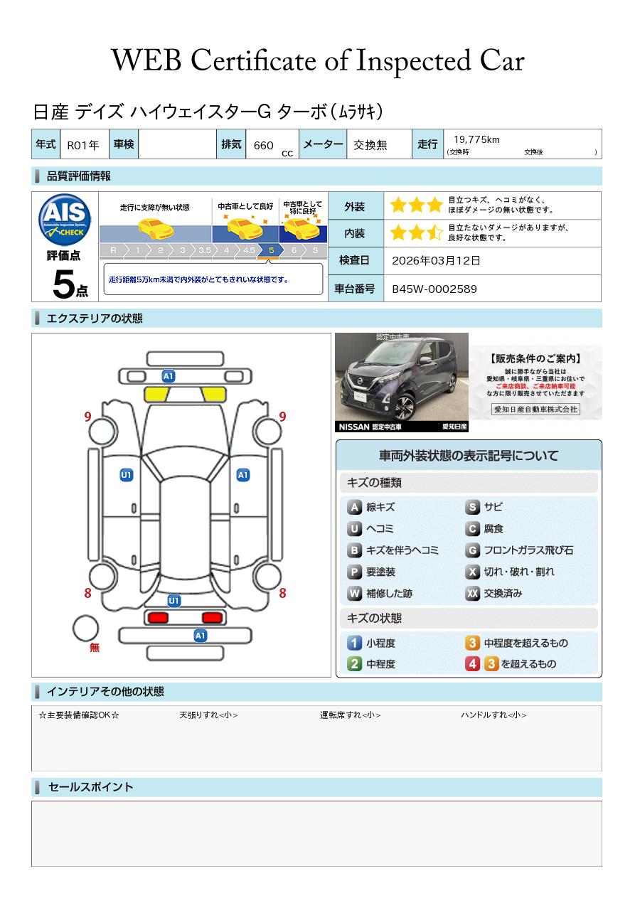 現状括弧書き内の年月まで車検有効期限が残っていますが、ご成約時に新しく車検を取り直します。なお取り直しの費用は車両価格に含まれています。