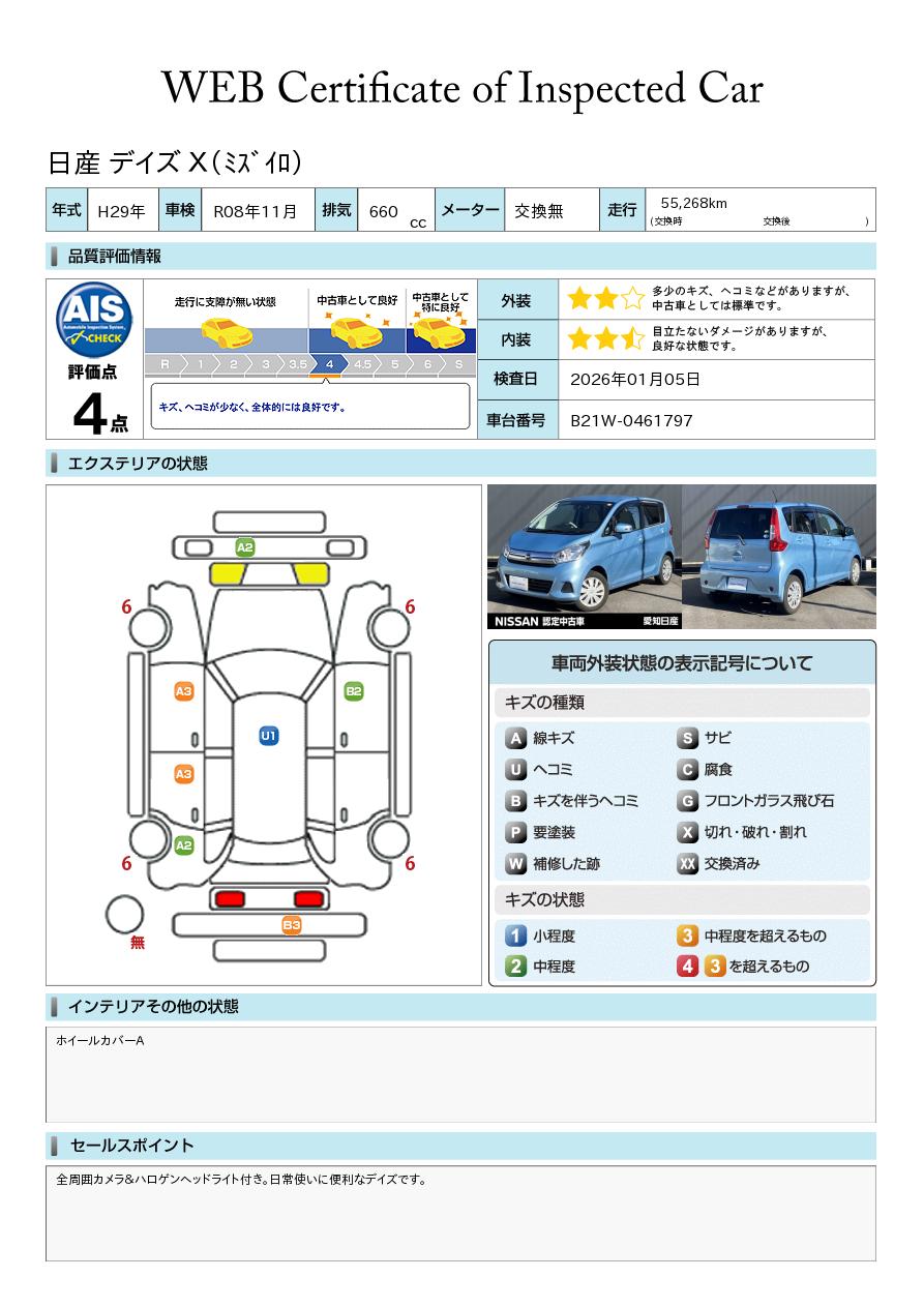 現状括弧書き内の年月まで車検有効期限が残っていますが、ご成約時に新しく車検を取り直します。なお取り直しの費用は車両価格に含まれています。