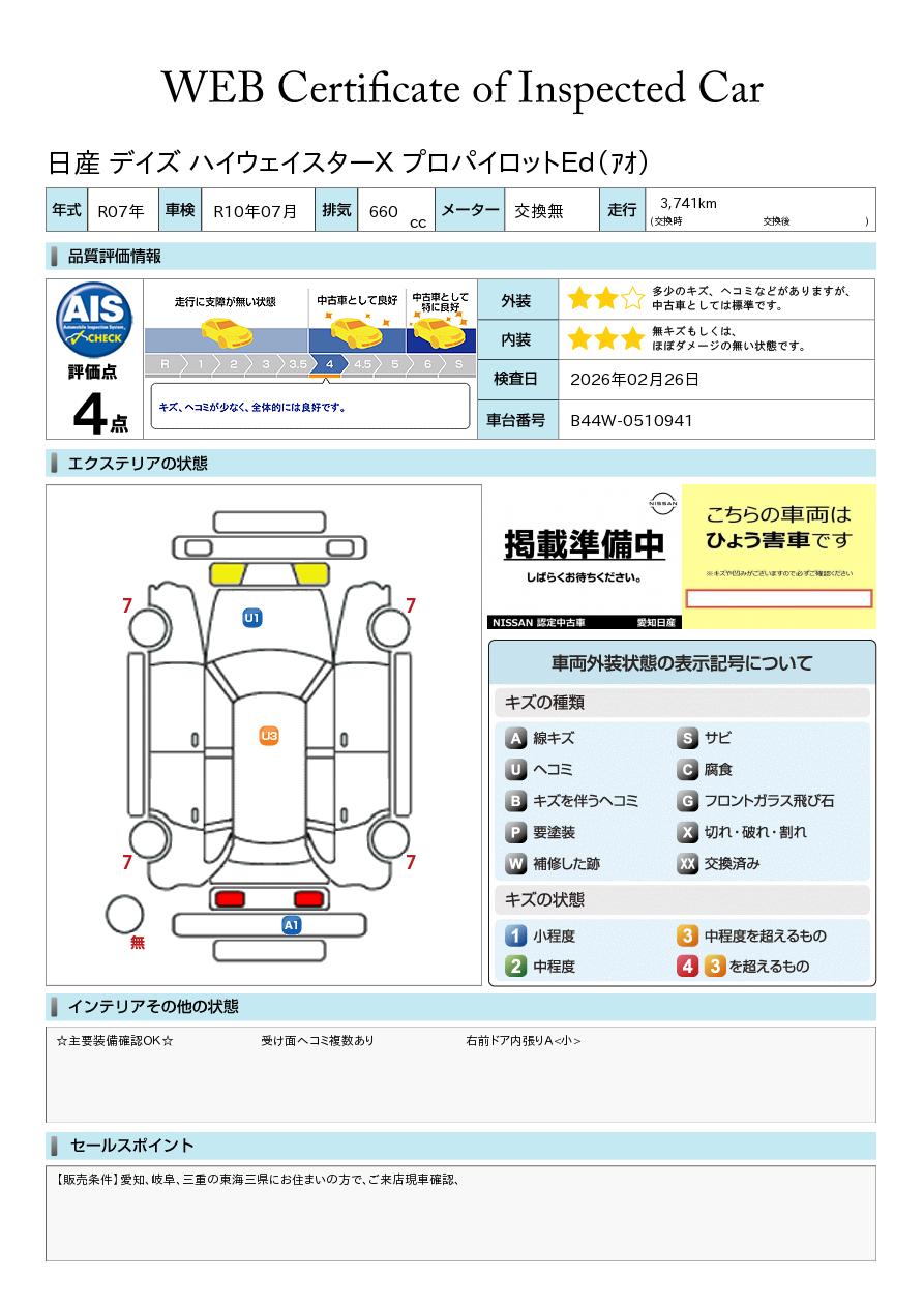 現状括弧書き内の年月まで車検有効期限が残っていますが、ご成約時に新しく車検を取り直します。なお取り直しの費用は車両価格に含まれています。