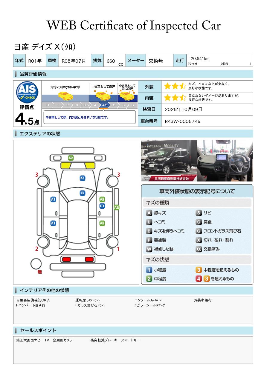 デイズ 660cc 660 X 純正大画面ナビ 全周囲カメラ ETC ドラレコ
