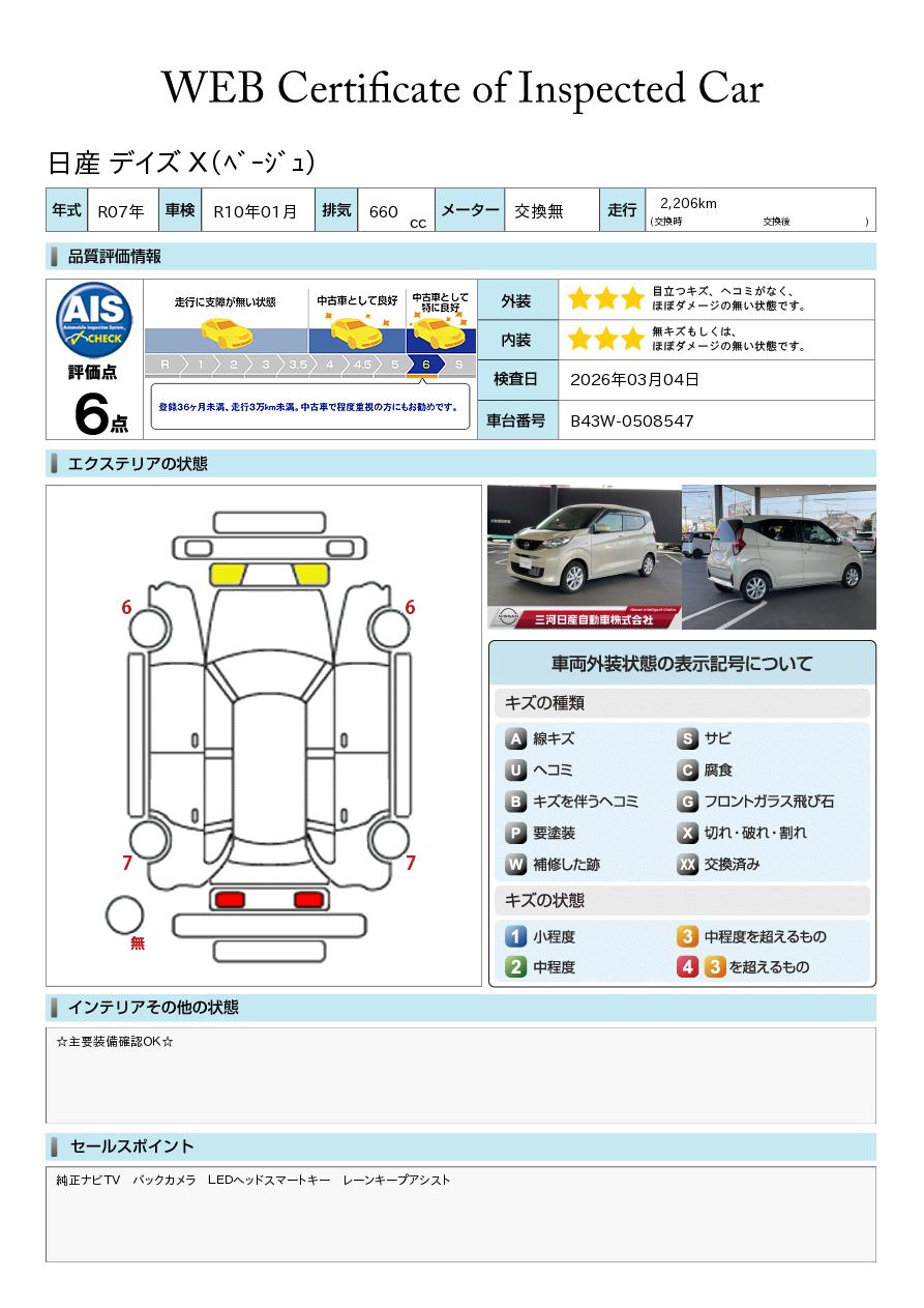 「車両状態証明書」は、査定協会監修のプロの検査員が公正かつ確かな基準で検査した”安心の証”です。