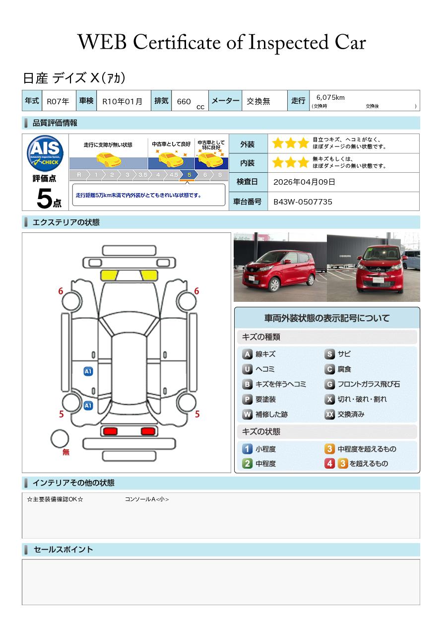 現状括弧書き内の年月まで車検有効期限が残っていますが、ご成約時に新しく車検を取り直します。なお取り直しの費用は車両価格に含まれています。