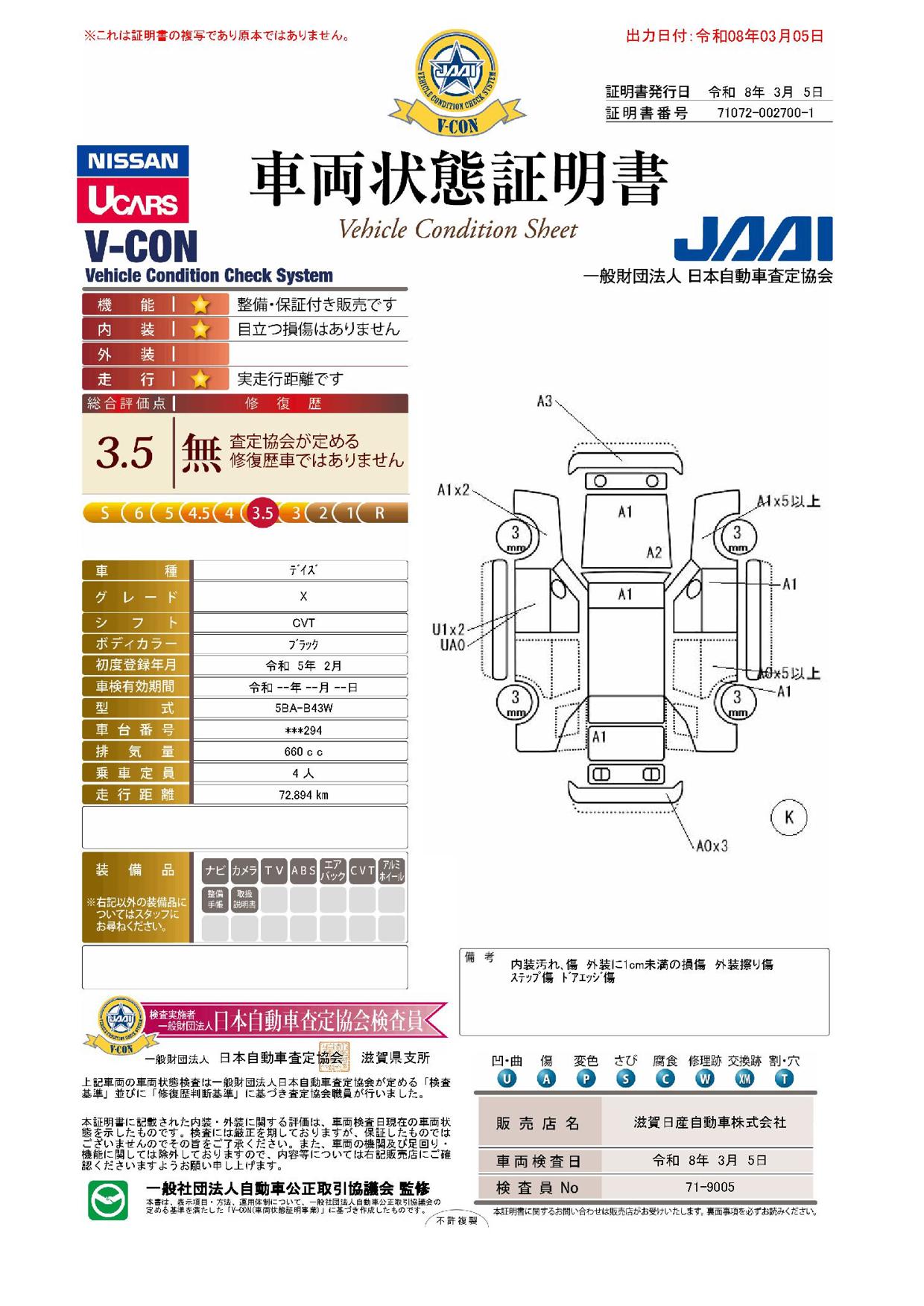購入から3か月間、走行距離無制限で保証。