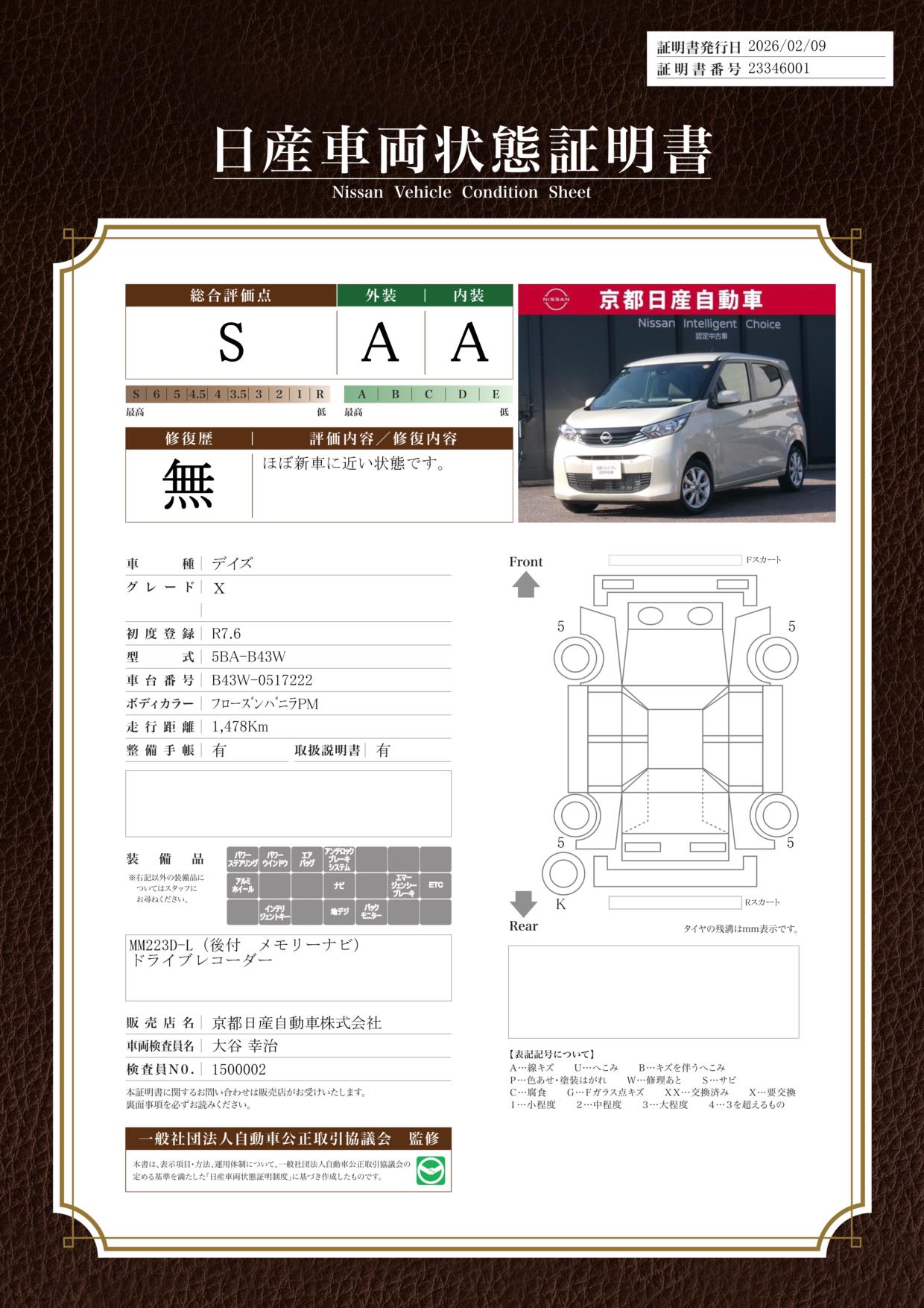 試乗車アップ純正ナビBカメラドラレコETC当店では、ご安心頂く為に、ご来店頂きお車のご確認をおススメしております。