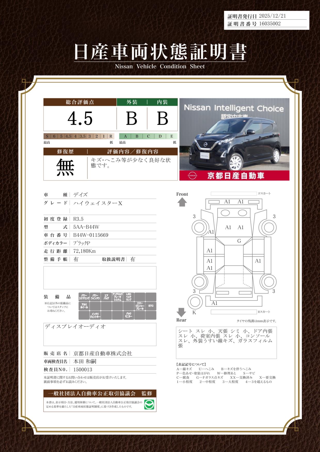 デイズ 660cc 660 X 純正ナビ AVM ドラレコ前後室内