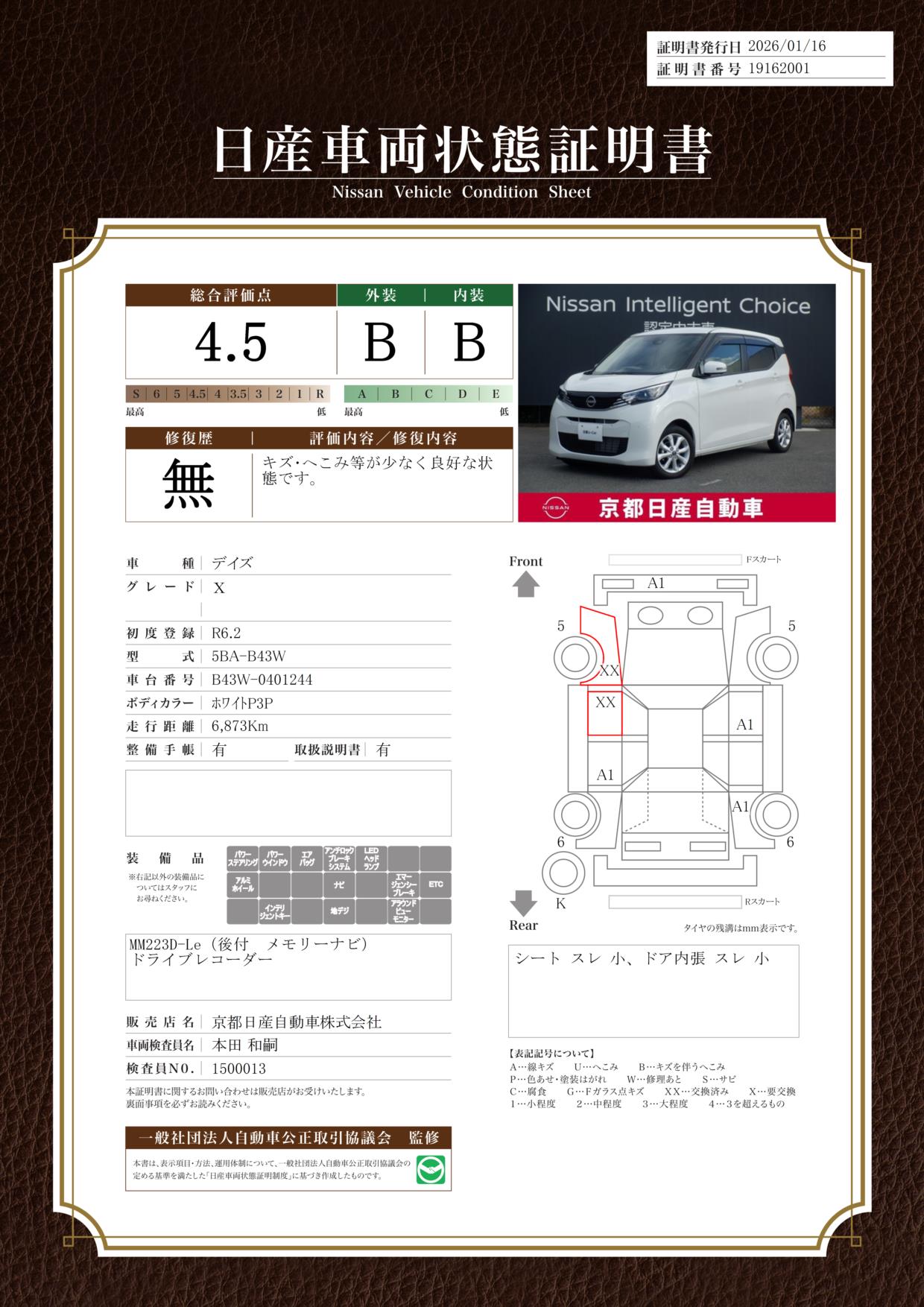 デイズ 660cc 660 X 純正ナビ バックカメラ ドラレコ前後室内