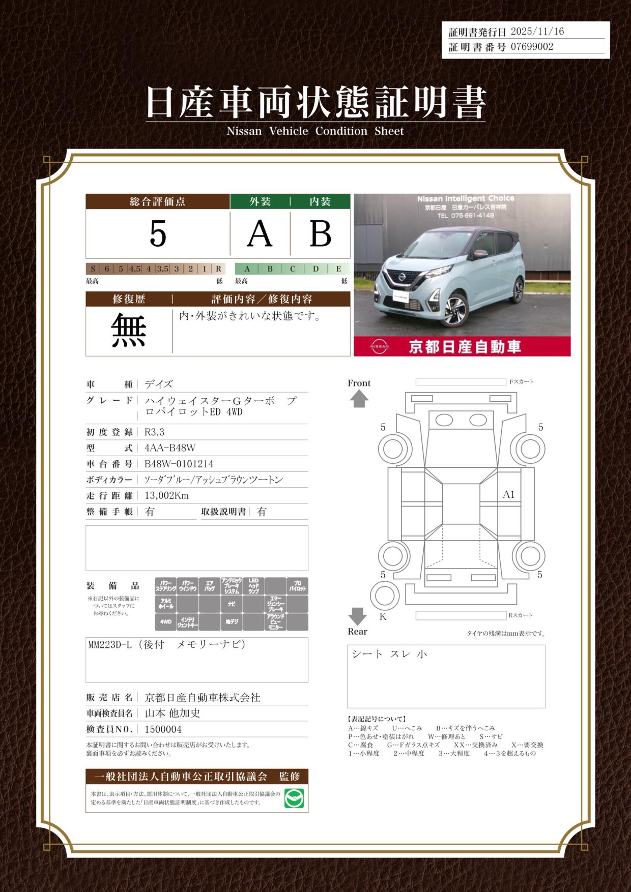 当店は、国道9号線に面し京都北部地区日産中古車最大の展示台数を誇り、豊富な車種を取り揃えております! 日産ディーラーならではの充実保証&高品質のお車を揃えておりますので、お車のご購入後もご安心してお乗り頂けます。 スタッフ一同、お客様のご来店・お問合せを、心よりお待ちいたします。