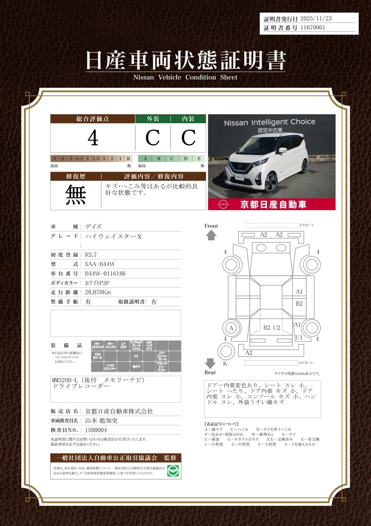 当店では、遠方の方はオンライン相談、おすすめしております。お近くであれば、現車確認お願い致します。