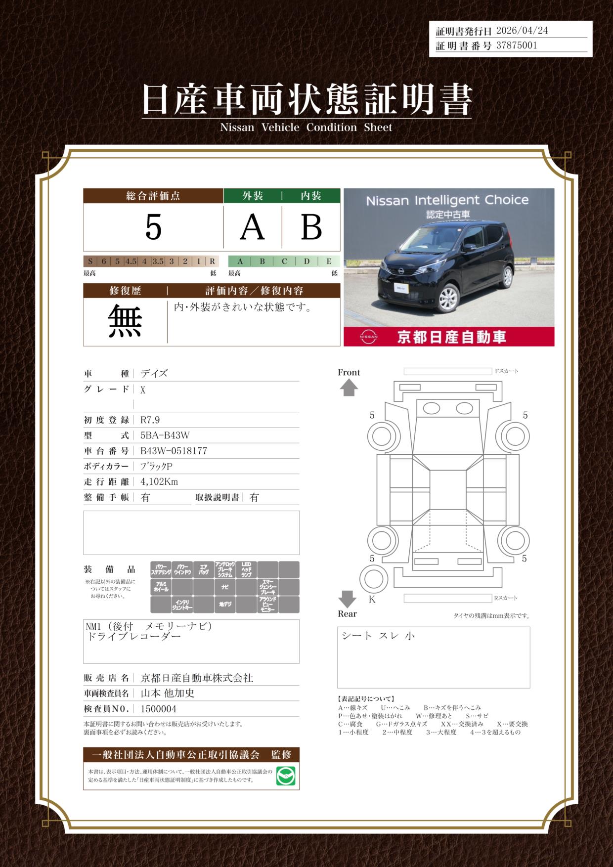 日産車両状態証明
