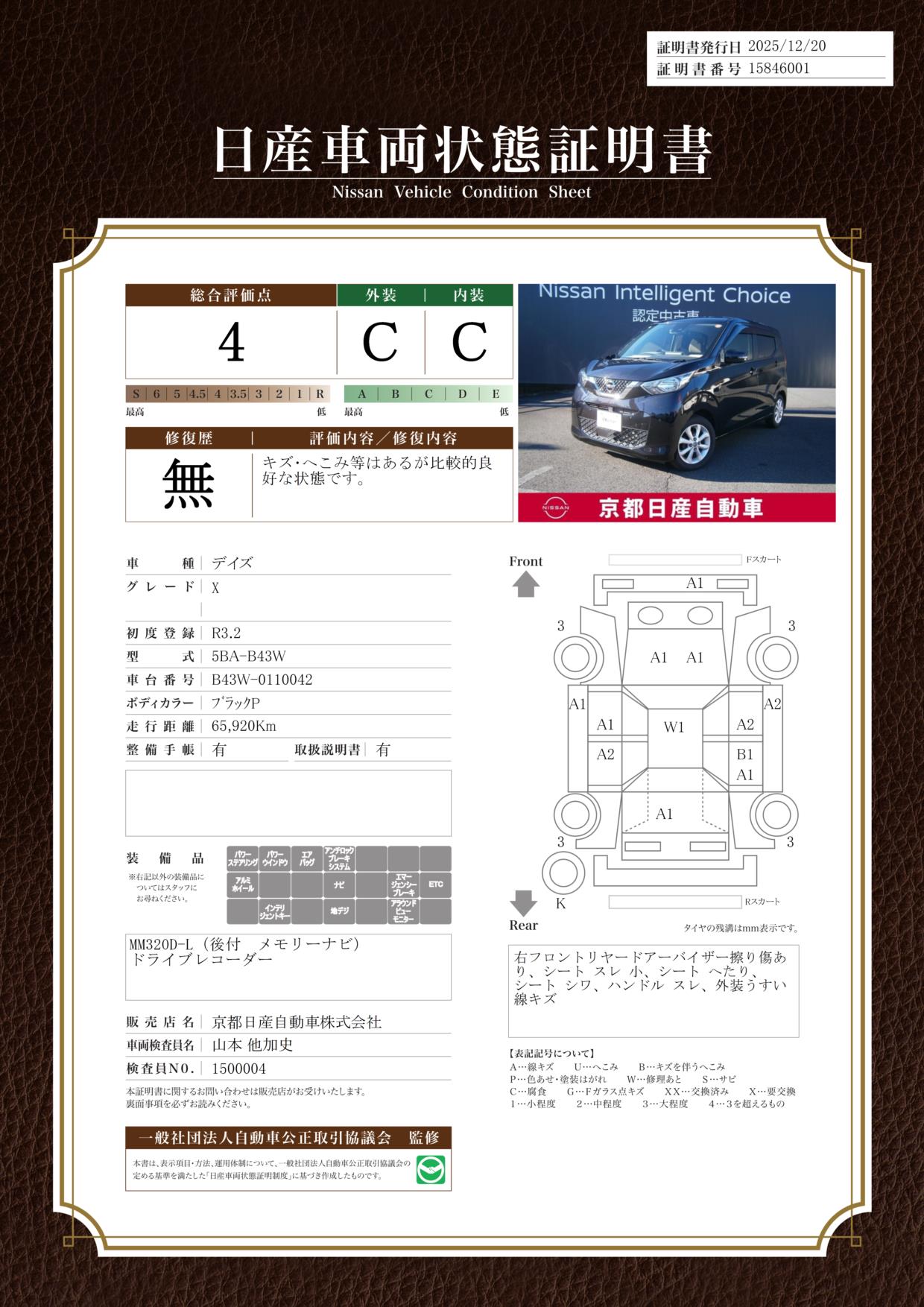 安心・高品質の中古車を取り扱っております! 諸費用が明確で安心の中古車選びを全力でサポートさせて頂きます! 購入後も安心ワイド保証付き(走行無制限、1年間保証)日本全国で対応出来ます! 人気のデイズ当社社用車続々入庫その他ノートe-POWER・デイズルークス社用車も入庫しております。 お買い得価格で展示しておりますので御来店お待ちしております。