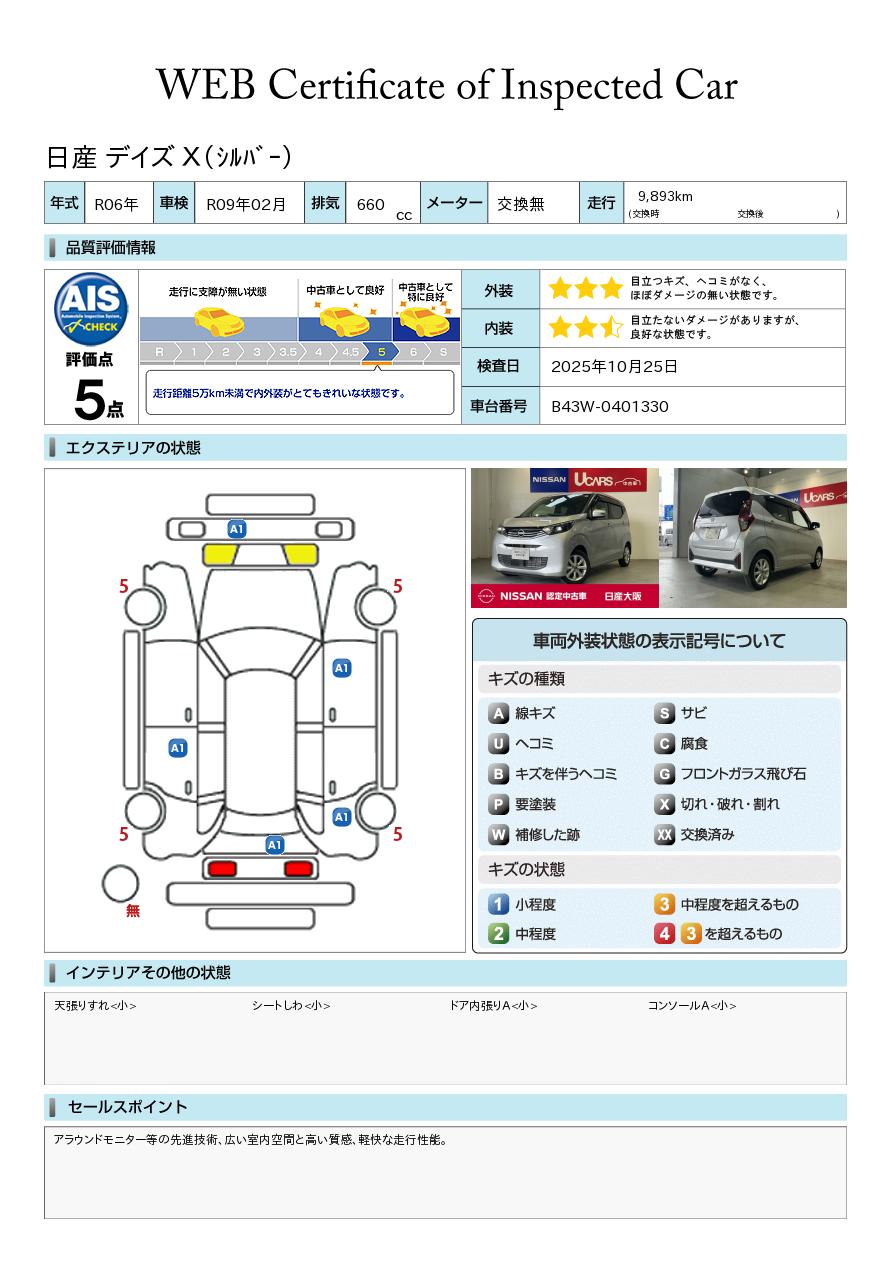 デイズ 660cc 660 X 元試乗車 衝突軽減ブレーキ 踏み間違い防