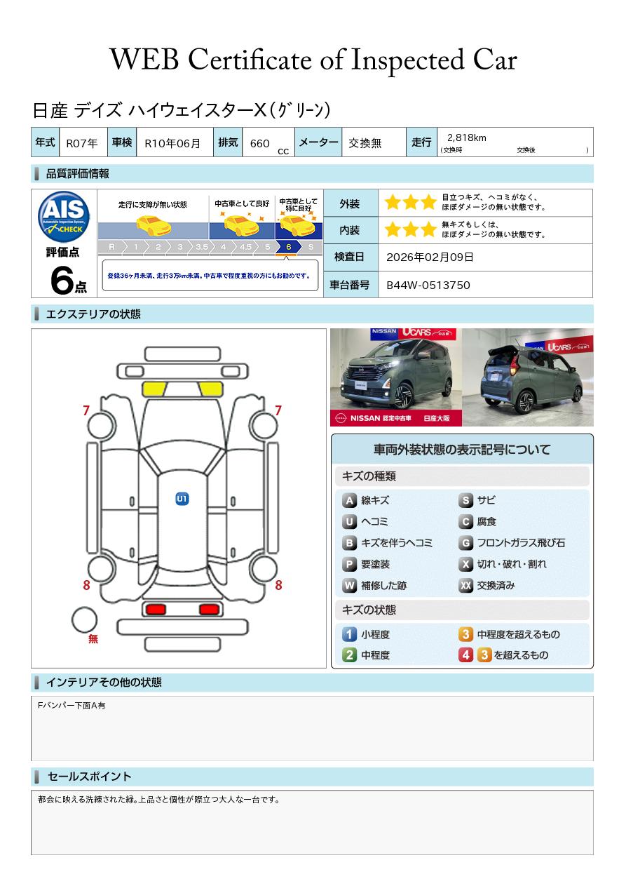 「車両状態証明書」は、査定協会監修のプロの検査員が公正かつ確かな基準で検査した”安心の証”です。