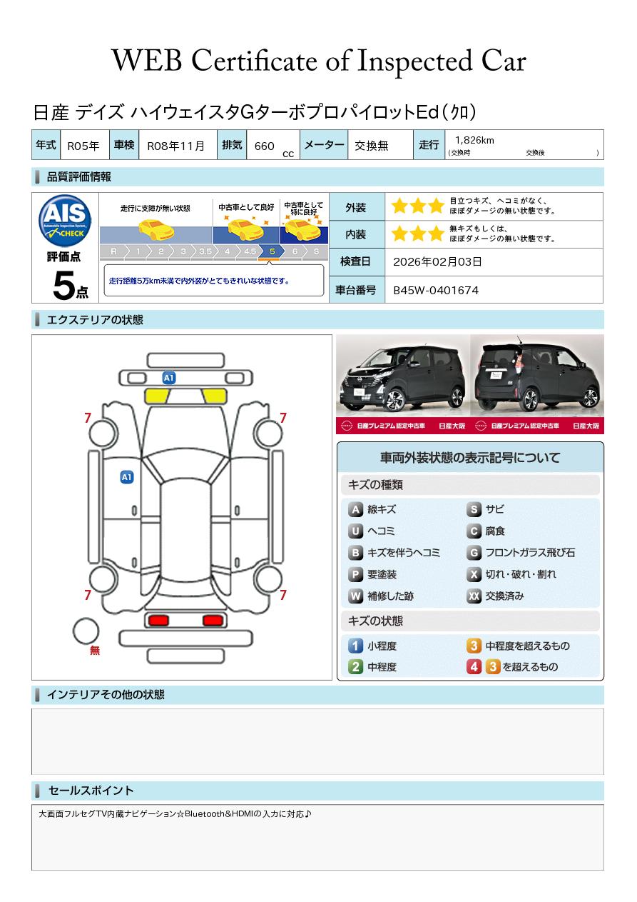 デイズ 660cc 660 ハイウェイスターGターボ プロパイロット エディション 日産純正メモリーナビ