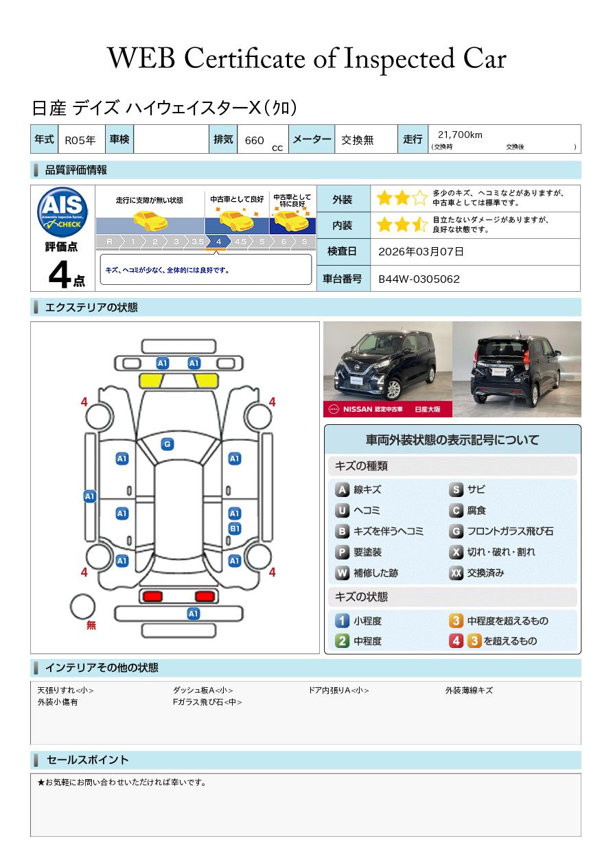 現状括弧書き内の年月まで車検有効期限が残っていますが、ご成約時に新しく車検を取り直します。なお取り直しの費用は車両価格に含まれています。