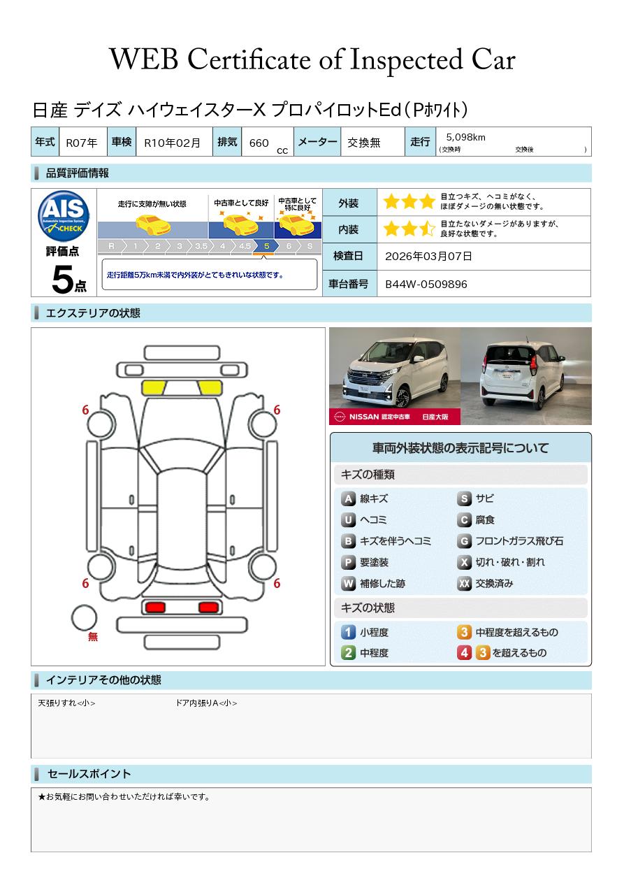 「車両状態証明書」は、査定協会監修のプロの検査員が公正かつ確かな基準で検査した”安心の証”です。
