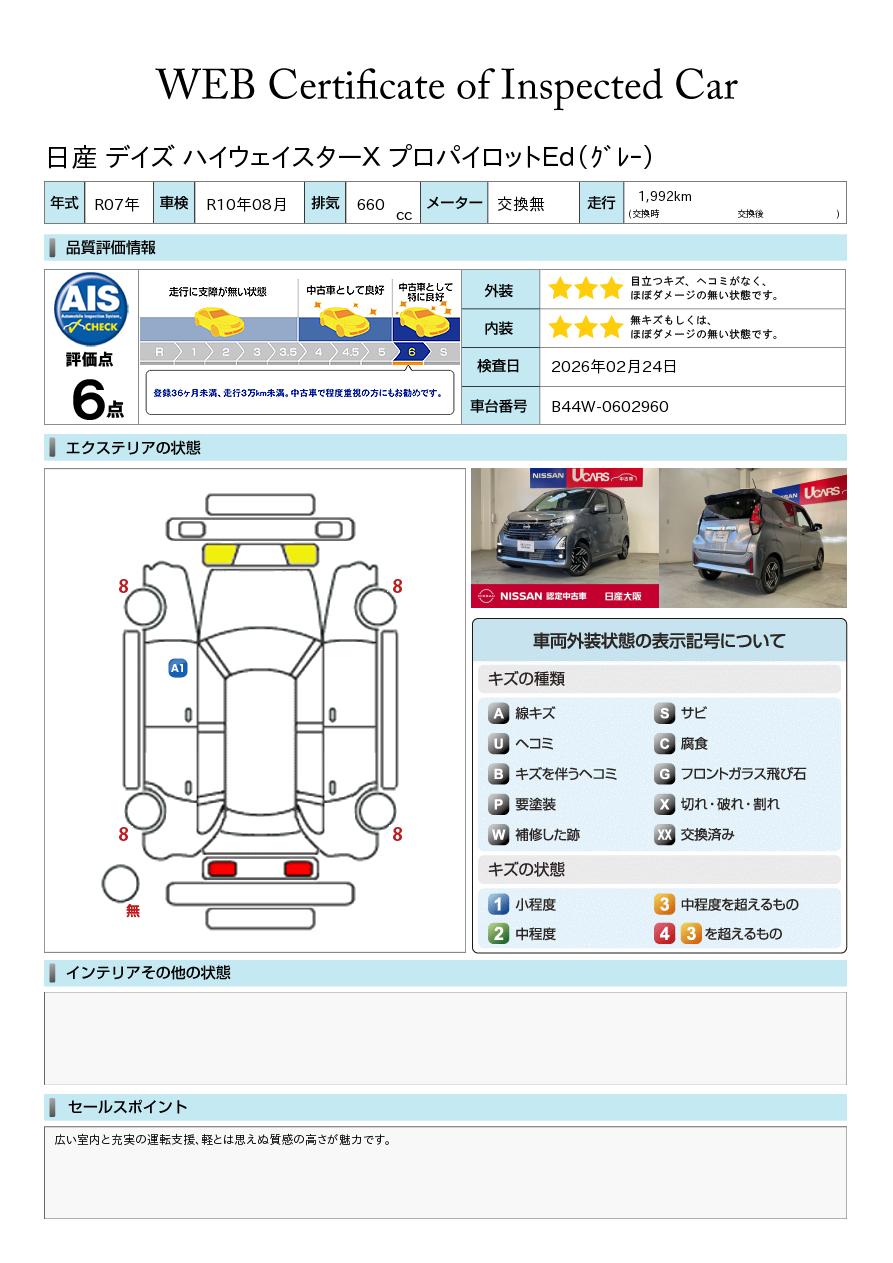 「車両状態証明書」は、査定協会監修のプロの検査員が公正かつ確かな基準で検査した”安心の証”です。