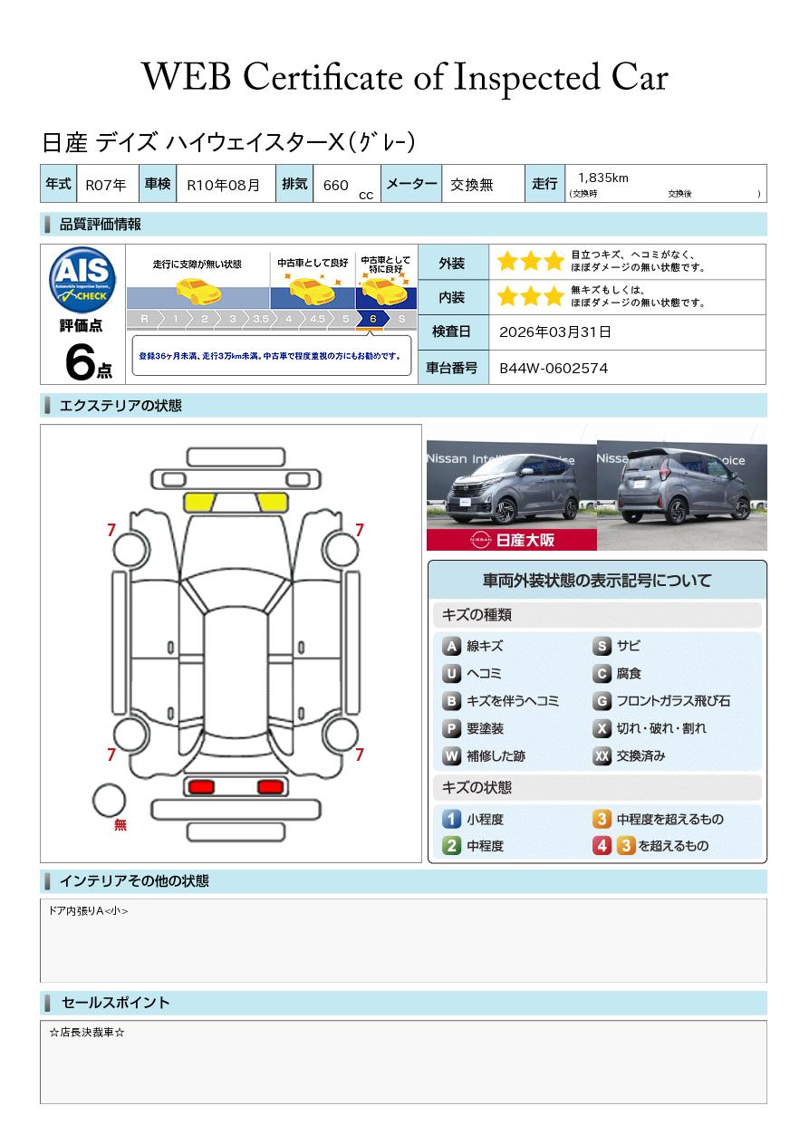 「車両状態証明書」は、査定協会監修のプロの検査員が公正かつ確かな基準で検査した”安心の証”です。