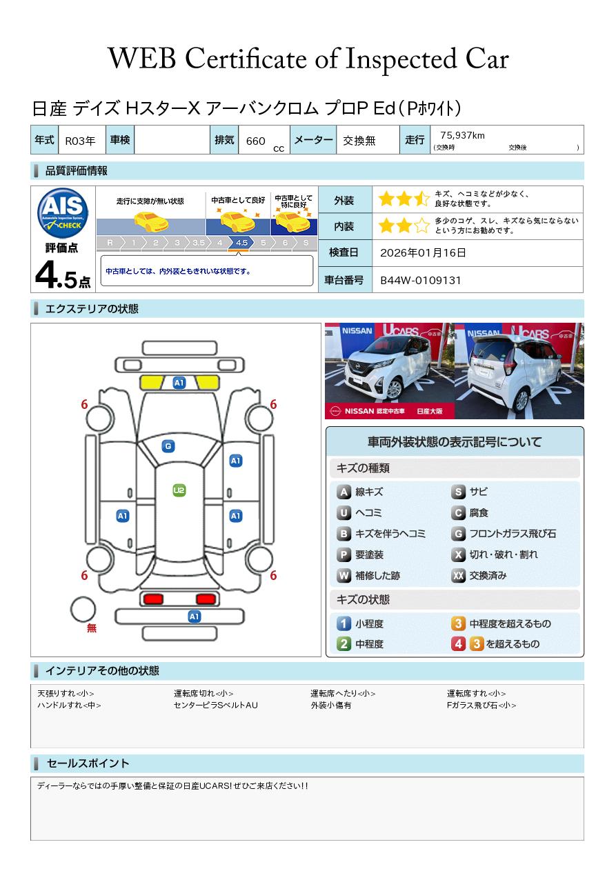 ディーラーならではの手厚い整備と保証の日産UCARS!ぜひご来店ください!!お買い得価格のデイズです!プロパイロットで高速道路の運転も楽々です!装備の良いグレードですよ!!