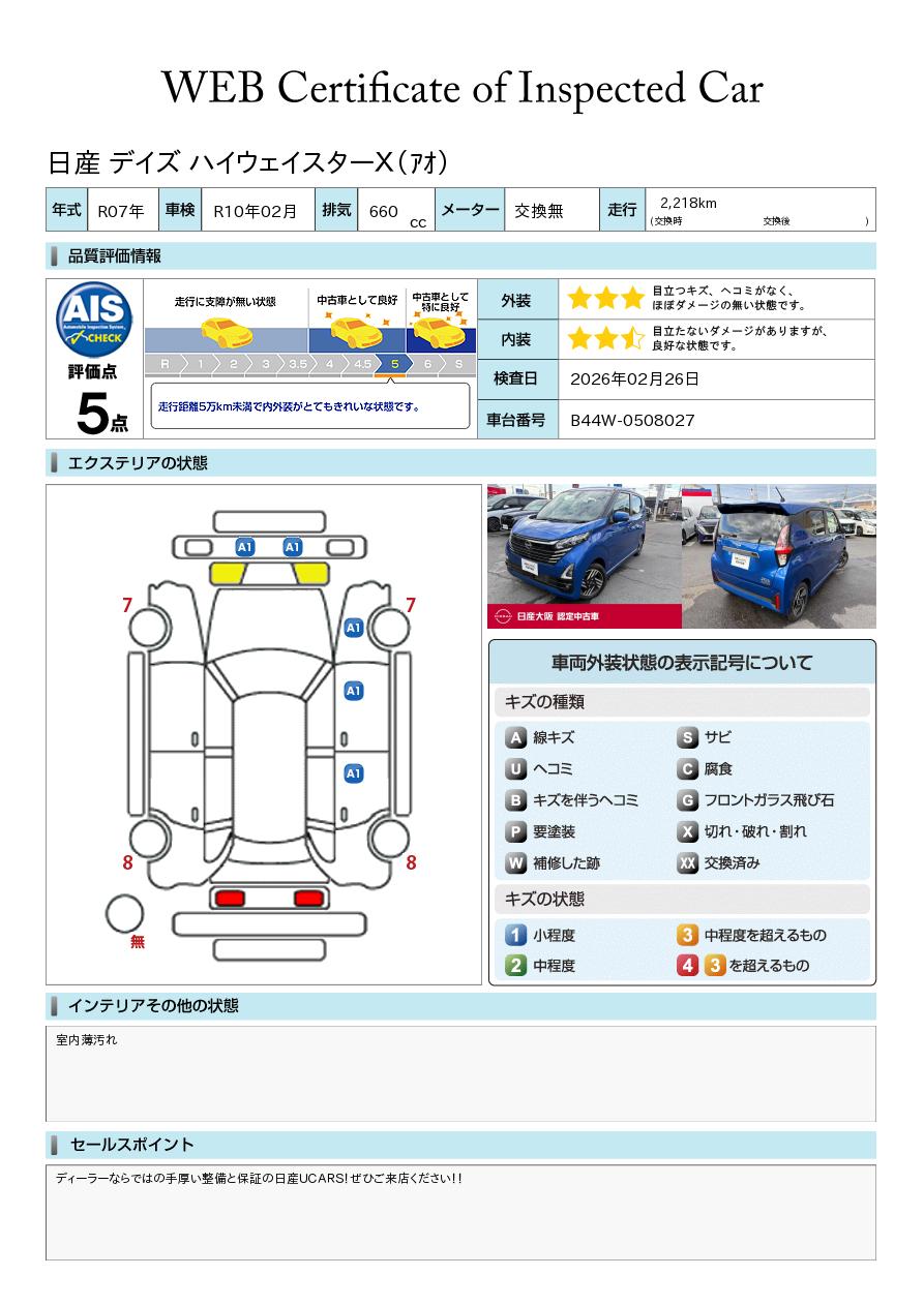 ディーラーならではの手厚い整備と保証の日産UCARS!ぜひご来店ください!!安全装備と快適装備の多数付いた元試乗車のデイズです!ながーく乗っていただけますね!!