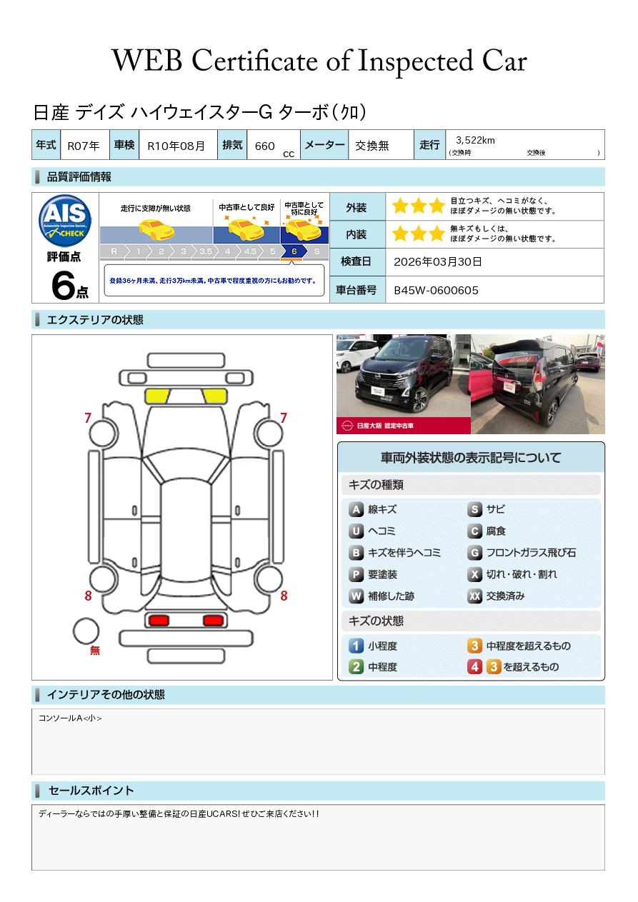「車両状態証明書」は、査定協会監修のプロの検査員が公正かつ確かな基準で検査した”安心の証”です。